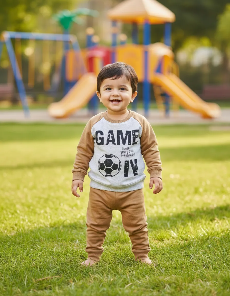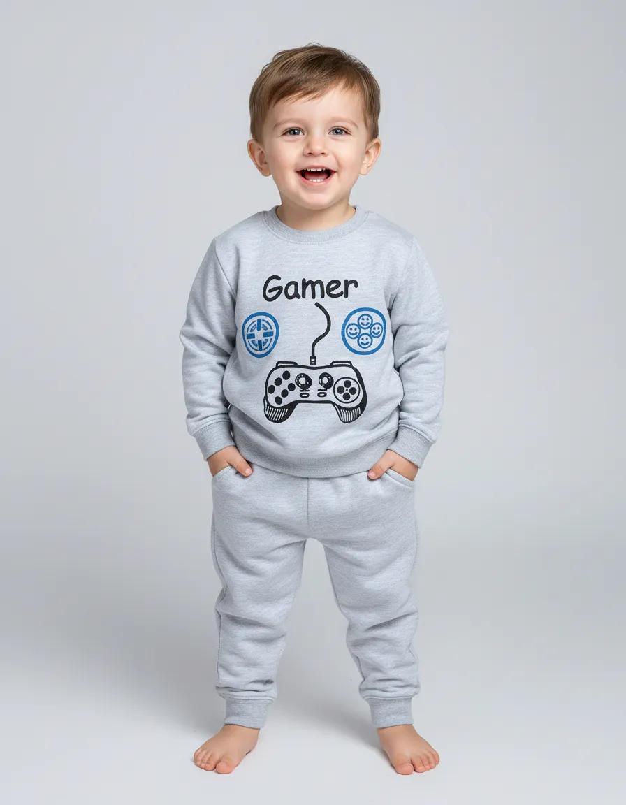 Boys Light Grey Full Sleeve Gamer Graphic Sweatshirt and Track Pant Set