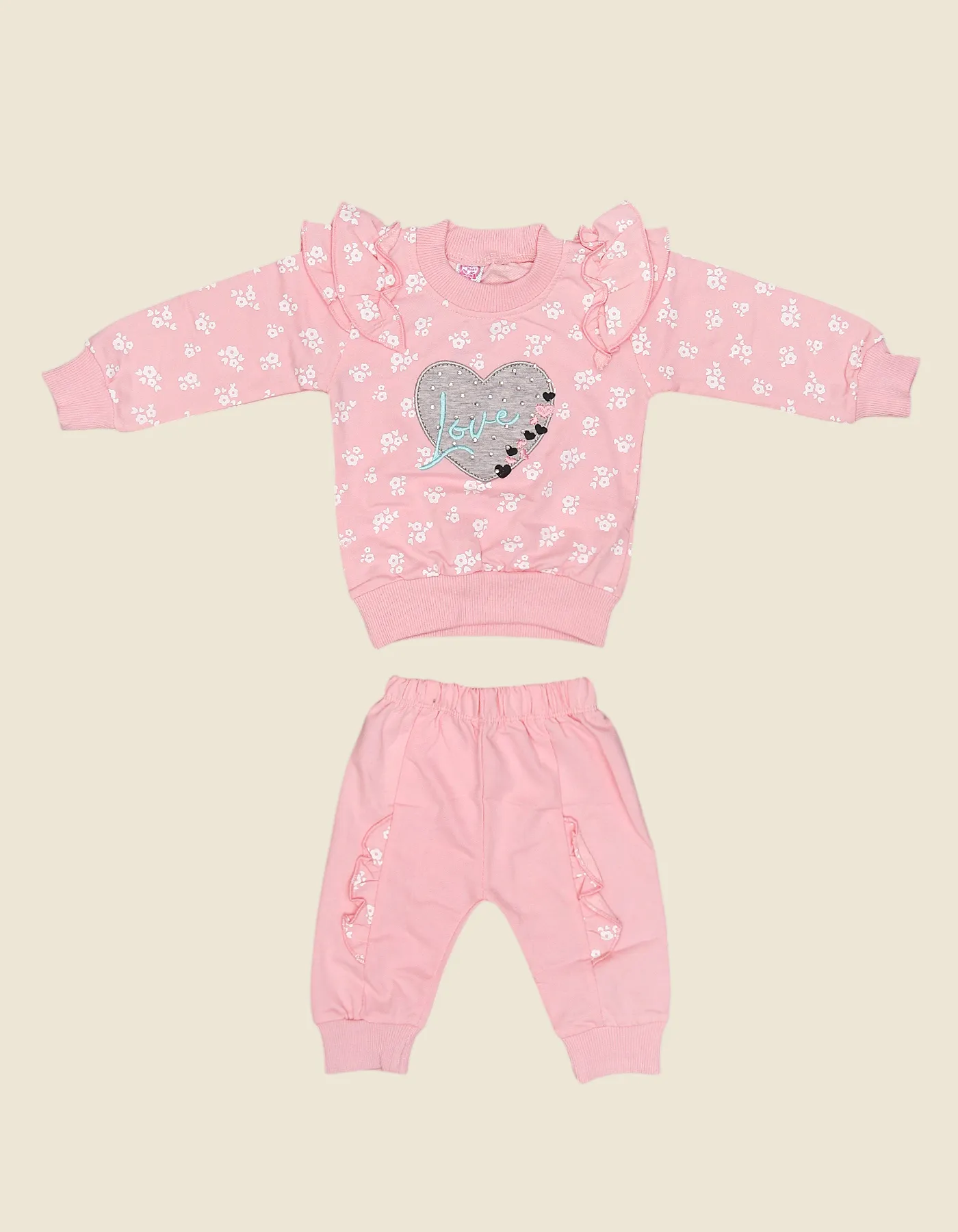 Love Heart Ruffle Baby Girls Suit