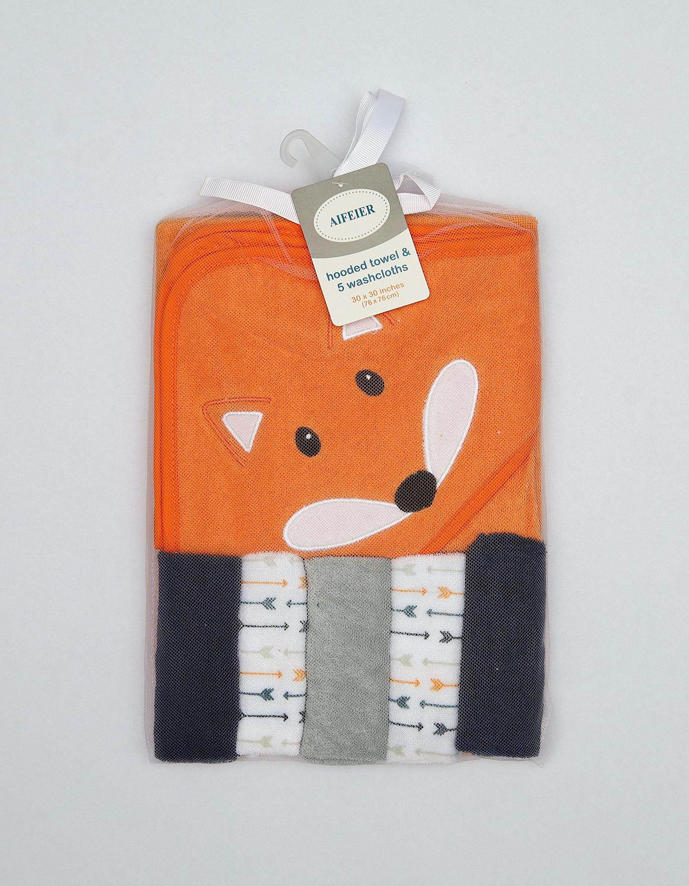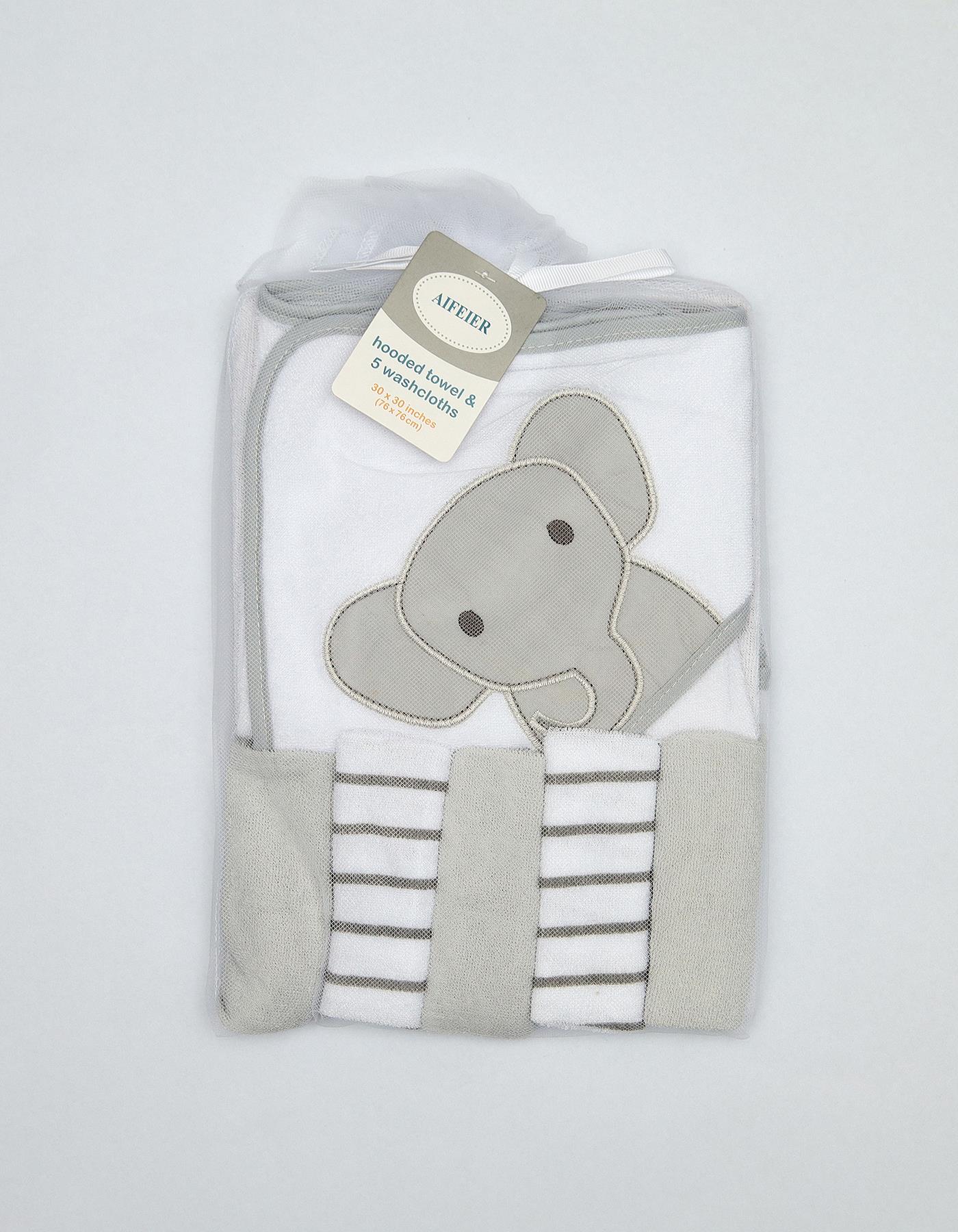 Complete Bath Set – Includes 1 hooded towel + 5 soft washcloths.
