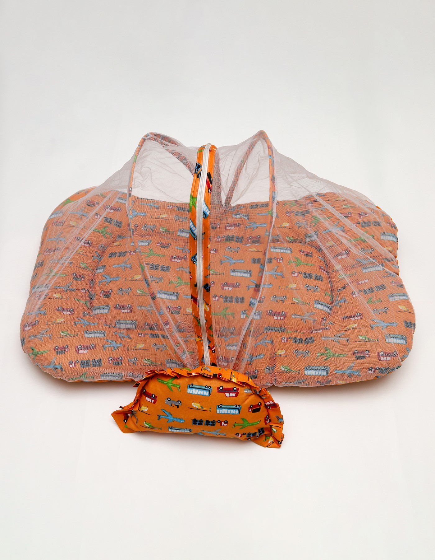 Give your baby a cozy and protected sleeping space with this baby bedding set, available in two attractive colors – Orange and Blue. Designed for comfort and safety, its perfect for both indoor and outdoor naps.