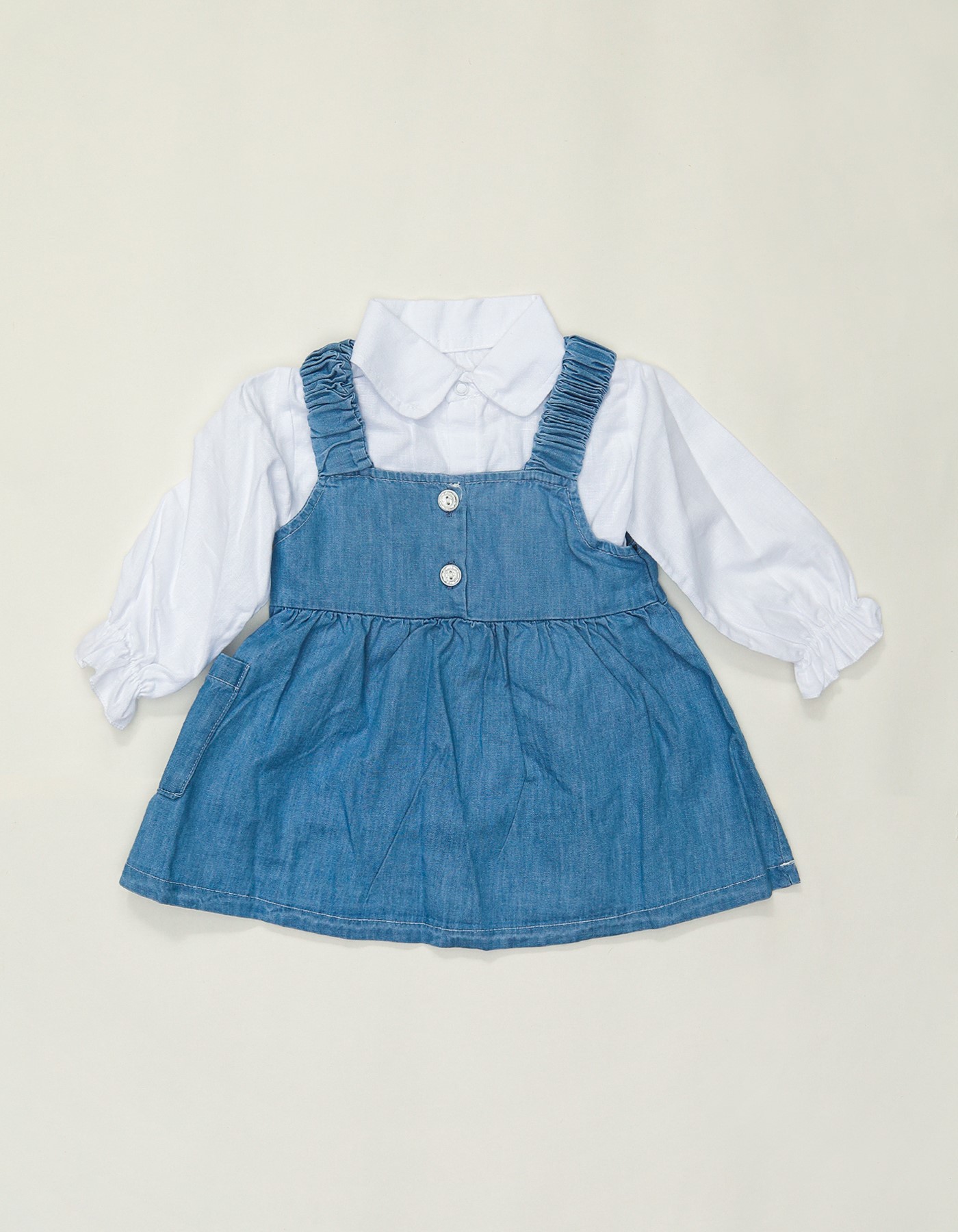 Dress your little one in style with this adorable denim dress and white shirt set. Perfect for casual outings, parties, or photoshoots, this outfit combines comfort and cuteness in one.