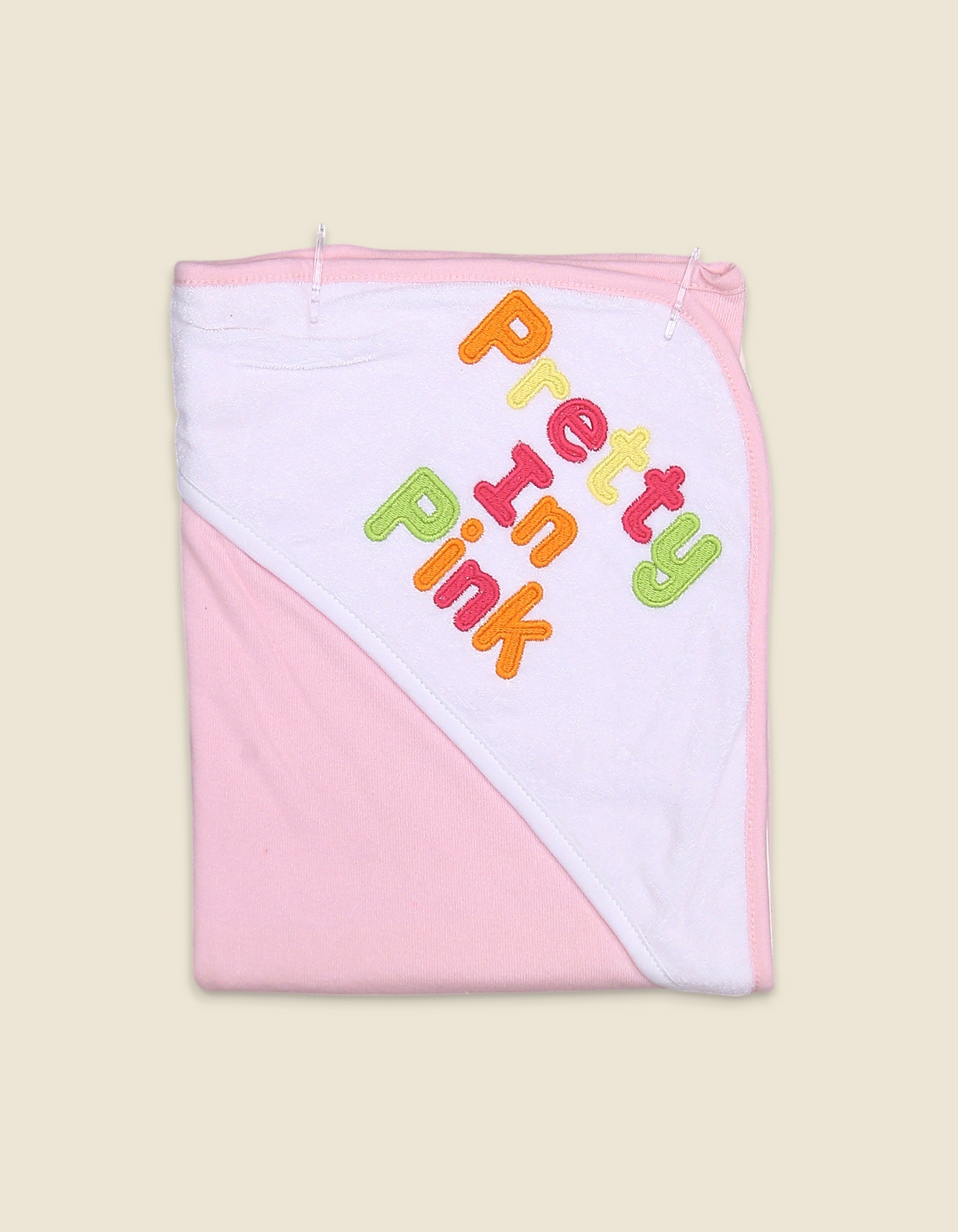 Make bath time extra adorable with this baby pink hooded bath towel featuring a colorful Pretty in Pink embroidery. Designed with soft, absorbent fabric, it gently wraps your little one in warmth and comfort after every bath. The hooded style keeps your babys head cozy, making it both practical and charming.