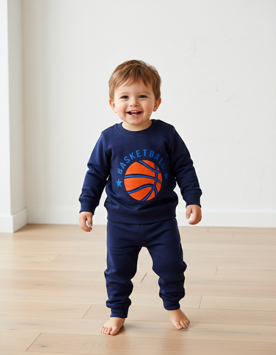 Sporty and stylish, this boys basketball tracksuit is perfect for active kids. Designed with a bold basketball print, it combines comfort and energy for everyday wear, sports, and casual outings.