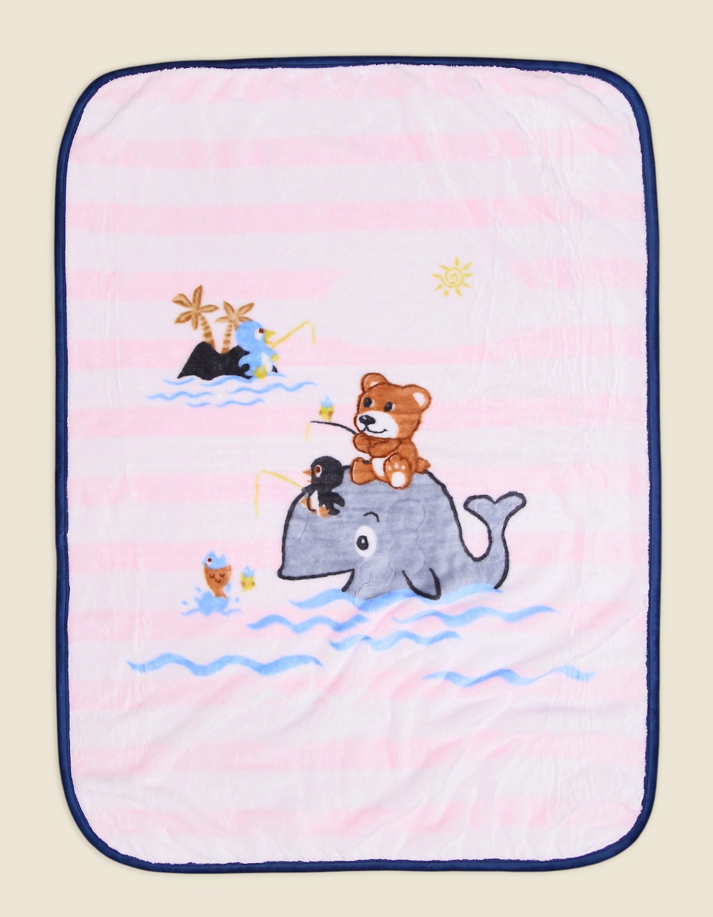 Make nap times fun with the Bear and Whale Adventure Baby Blanket. Crafted from super-soft fleece material, this blanket ensures warmth and comfort while being gentle on babys delicate skin. The blanket features an adorable cartoon design of a bear riding a whale with playful sea creatures, sparking imagination and joy for your little one. Available in Parrot Green and Pink, its perfect for both boys and girls, making it a versatile addition to your babys essentials.