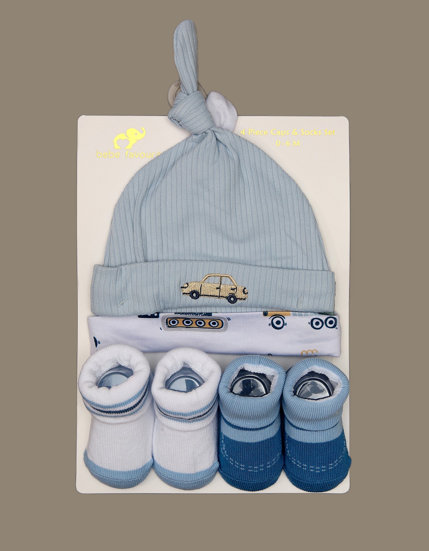 Dress your little one in style with this adorable car-themed cap and sock set from Bebe Favour. Designed for comfort and cuteness, its perfect for babies from birth up to 6 months.