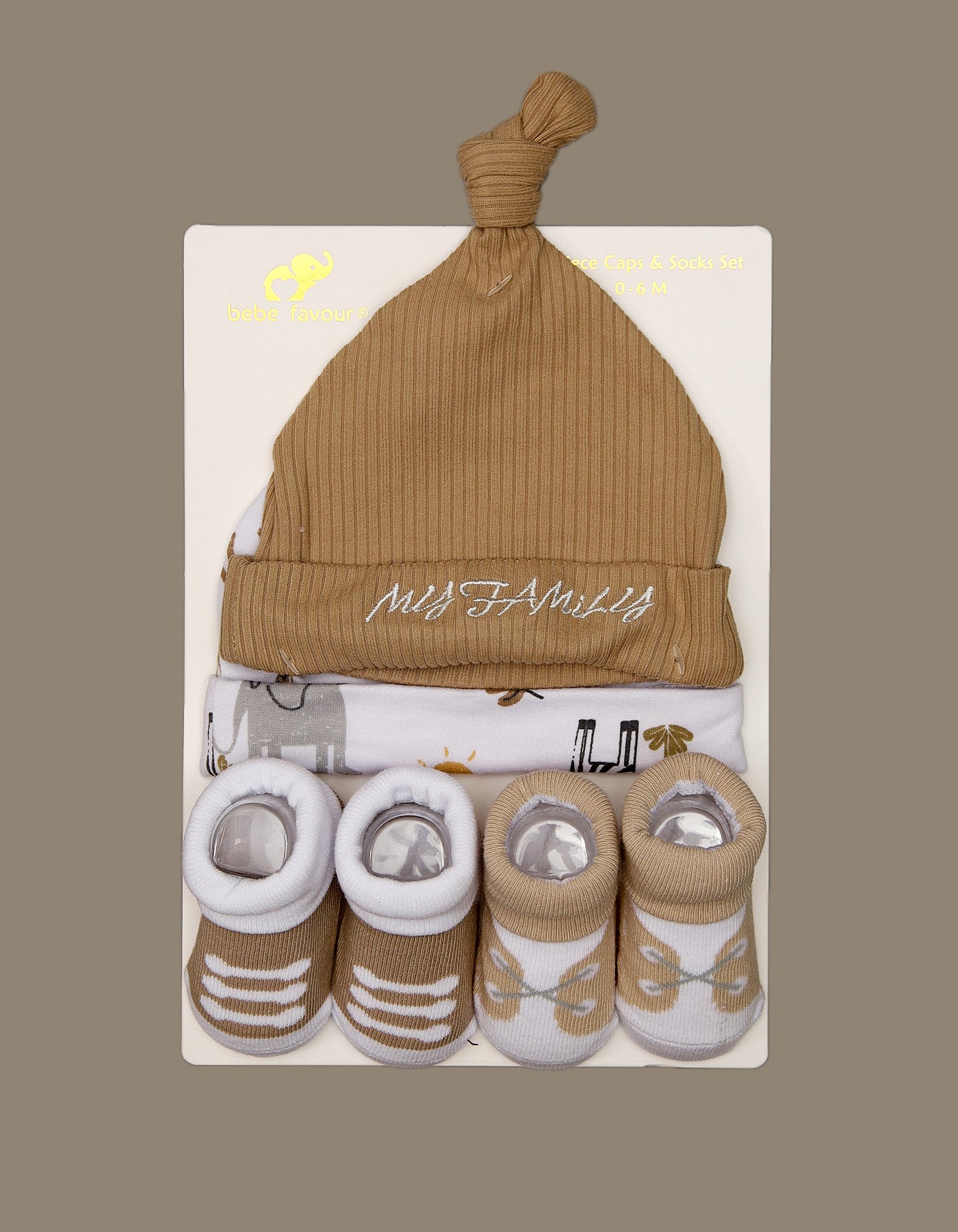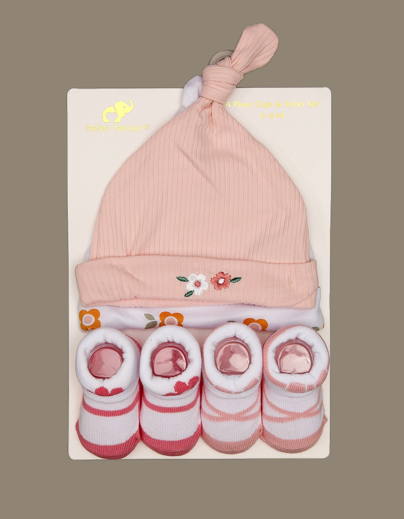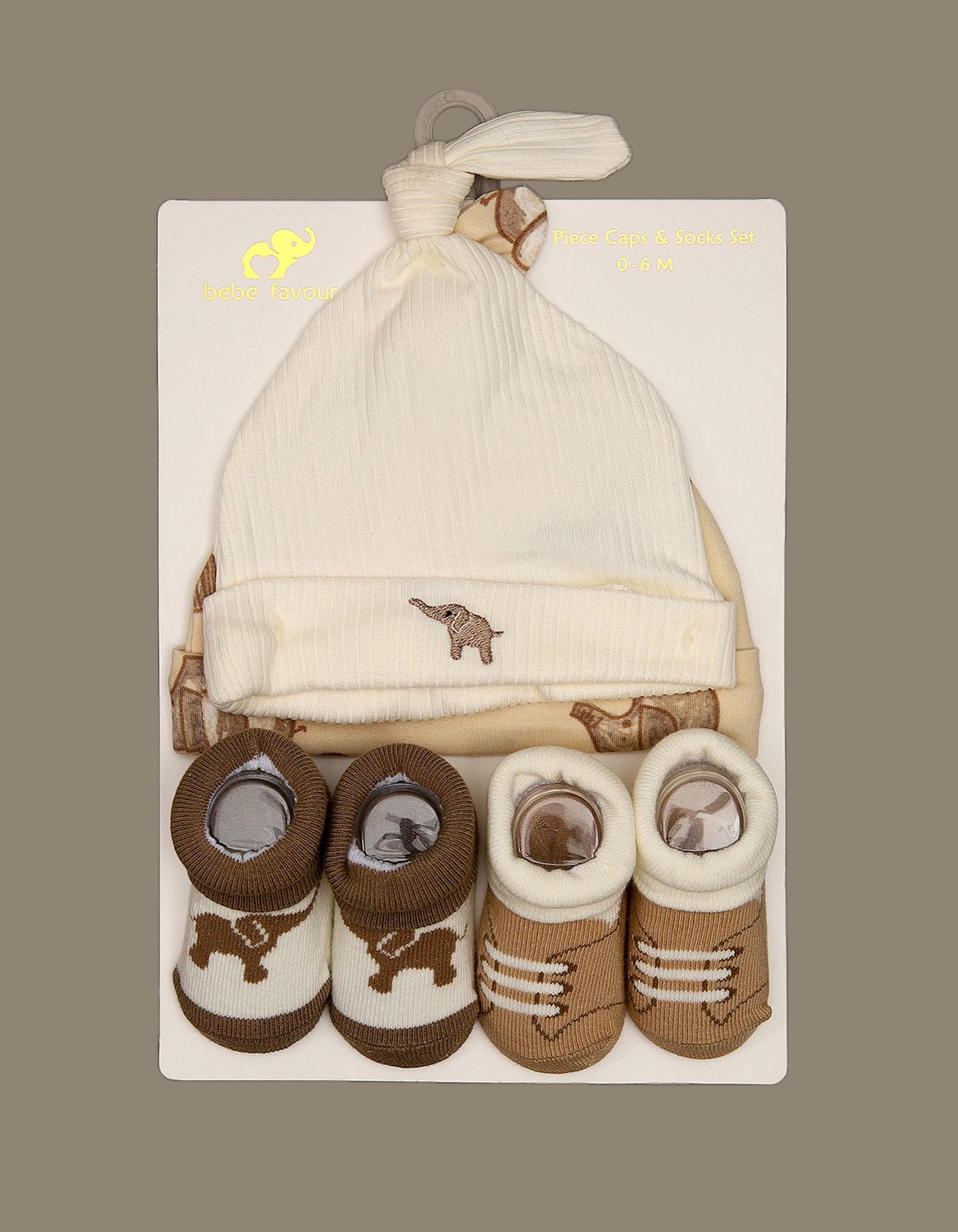 Includes 2 soft cotton caps and 2 pairs of matching socks