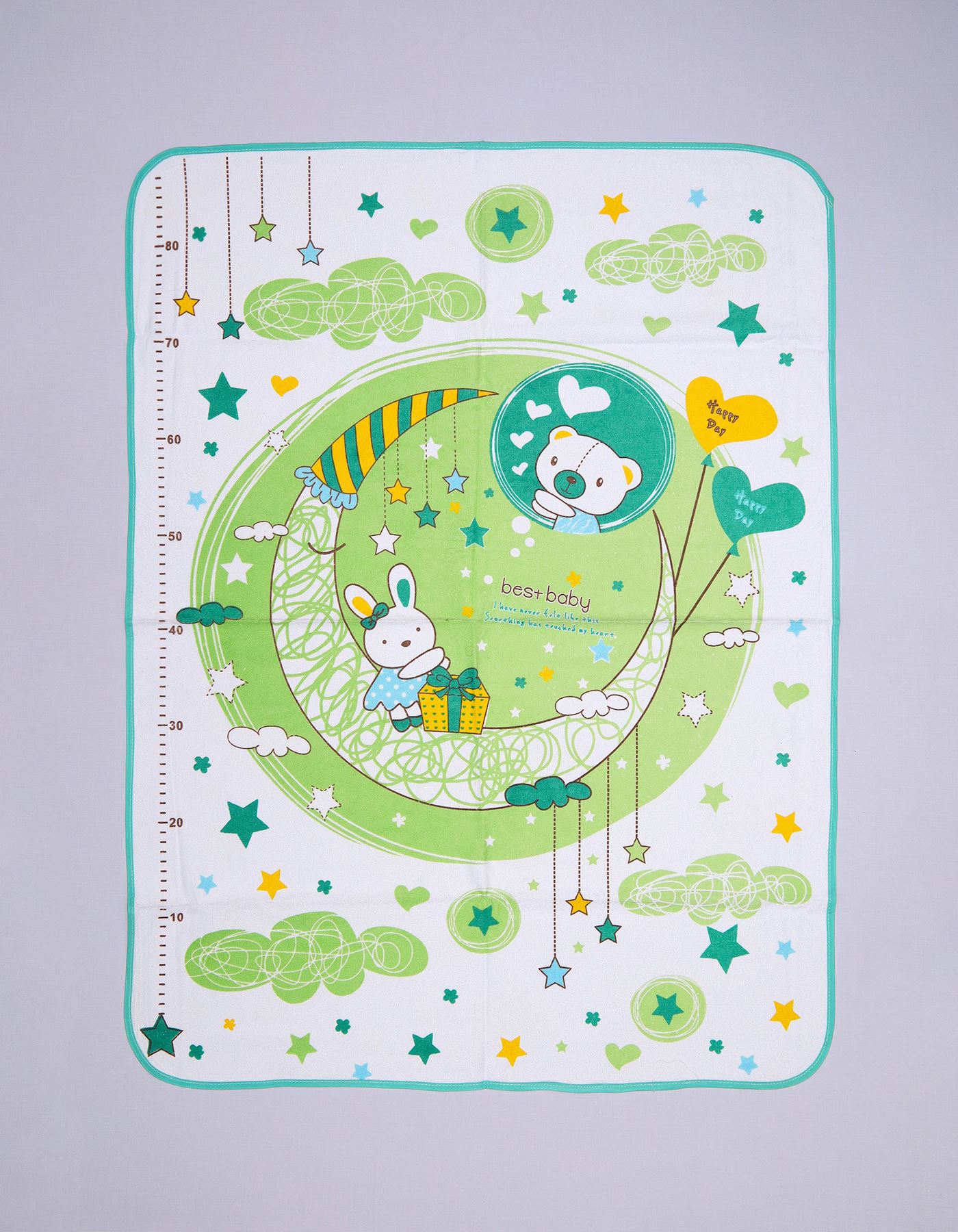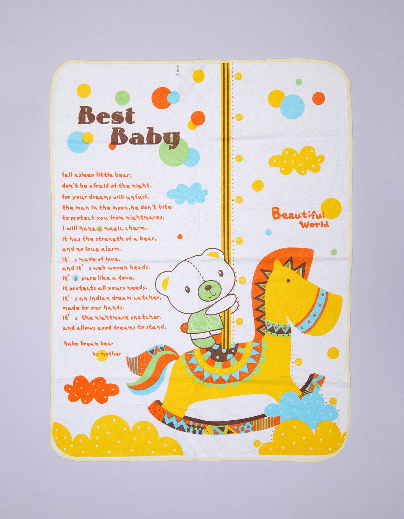A soft and colorful changing pad designed for babies, featuring a cute bear riding a horse, dreamy stars and clouds, and a comforting bedtime poem. Ideal for diaper changes, nap time, or travel use.