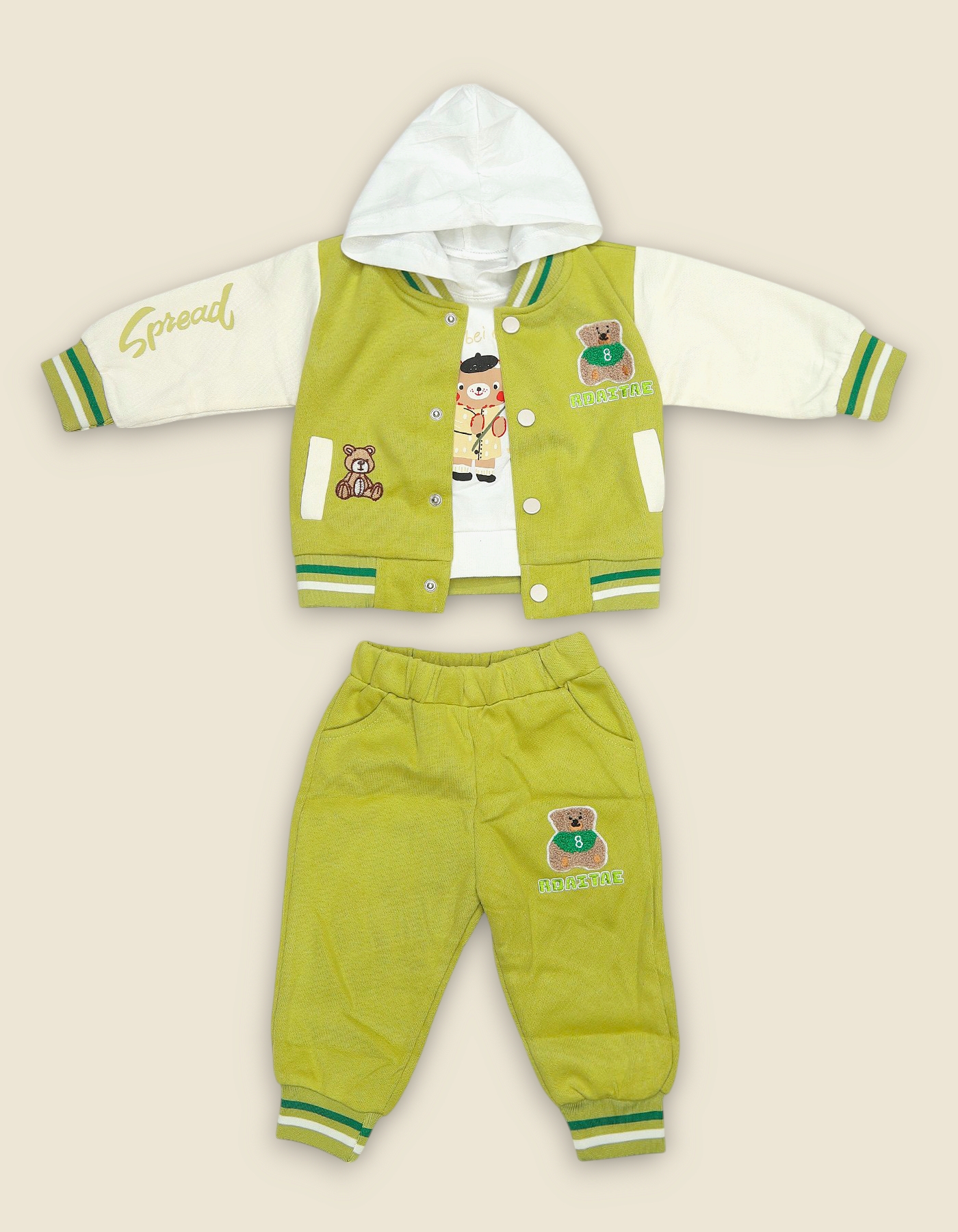 Cute and cozy boys suit with teddy bear embroidery and striped accents. Perfect for casual wear outings and gifting