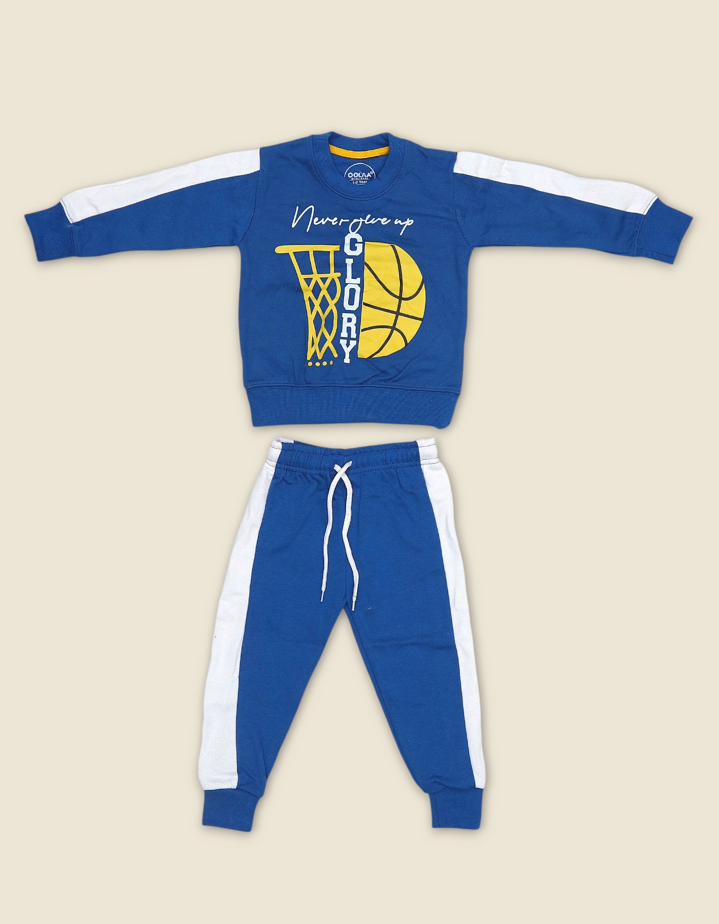 Sporty boys track suit with basketball graphic sweatshirt and striped pants. Perfect for casual wear playtime and gifting