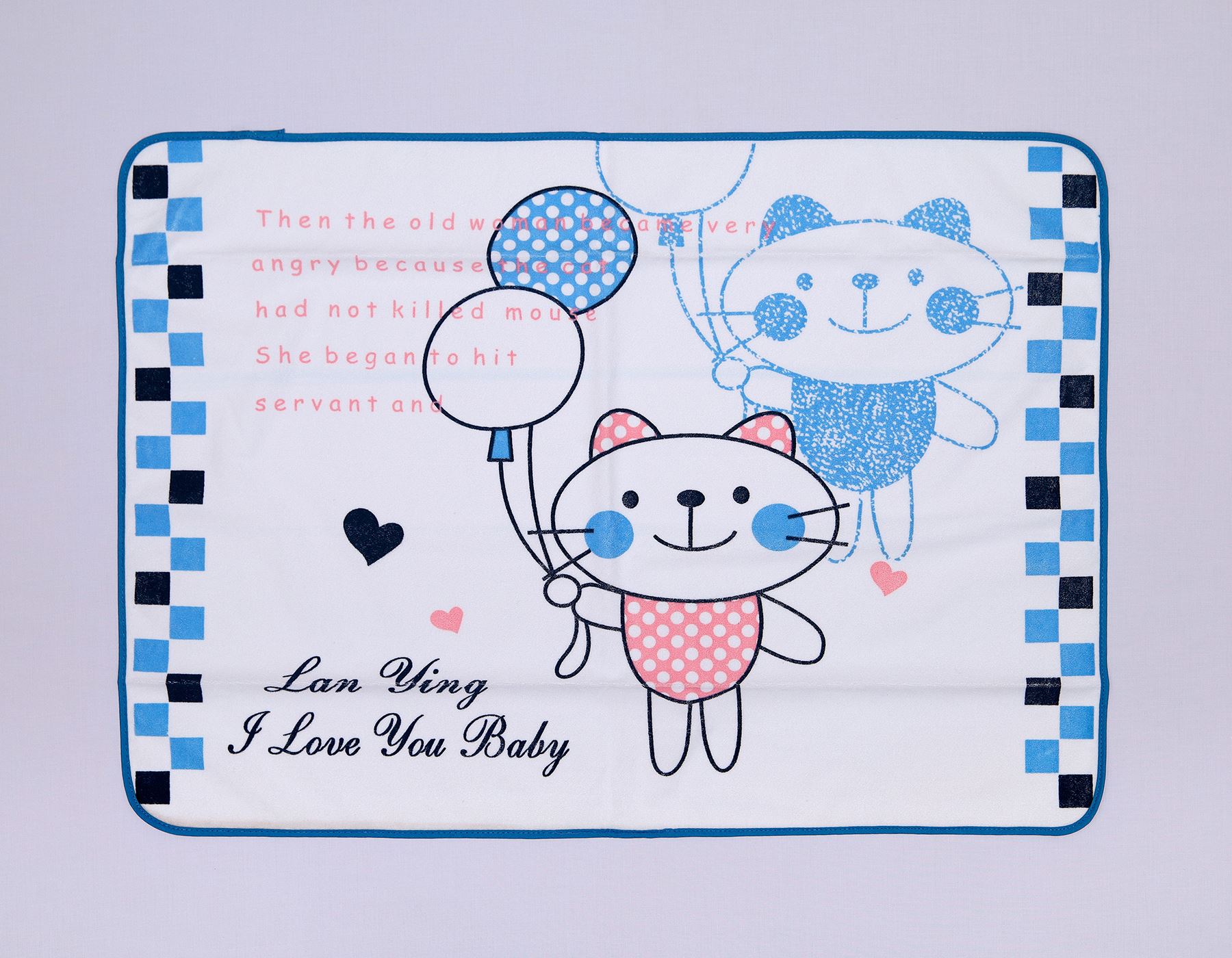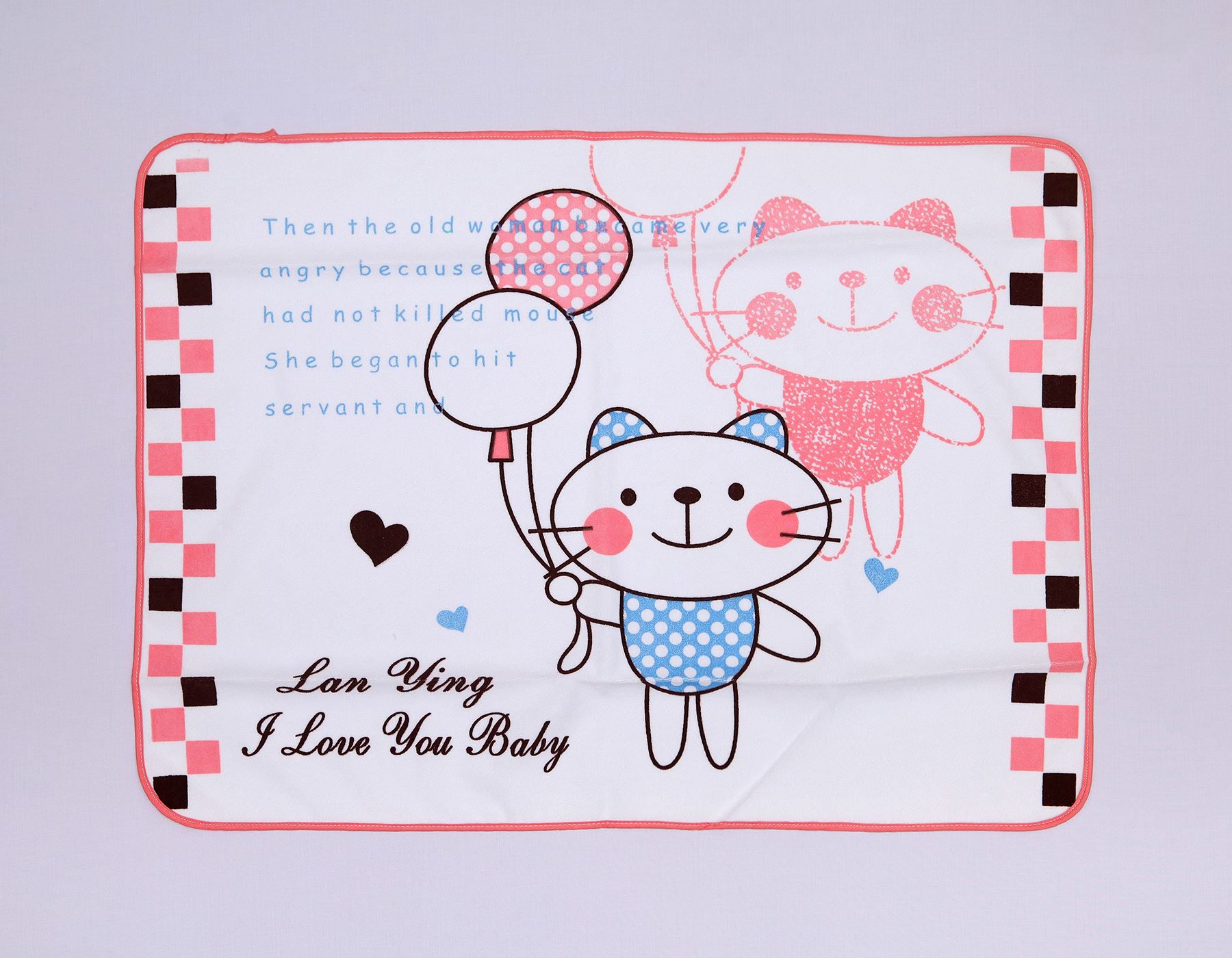 A soft and colorful changing pad featuring playful cartoon cats, balloons, hearts, and a checkerboard border. Designed to bring fun and comfort to diaper time while adding charm to any nursery.