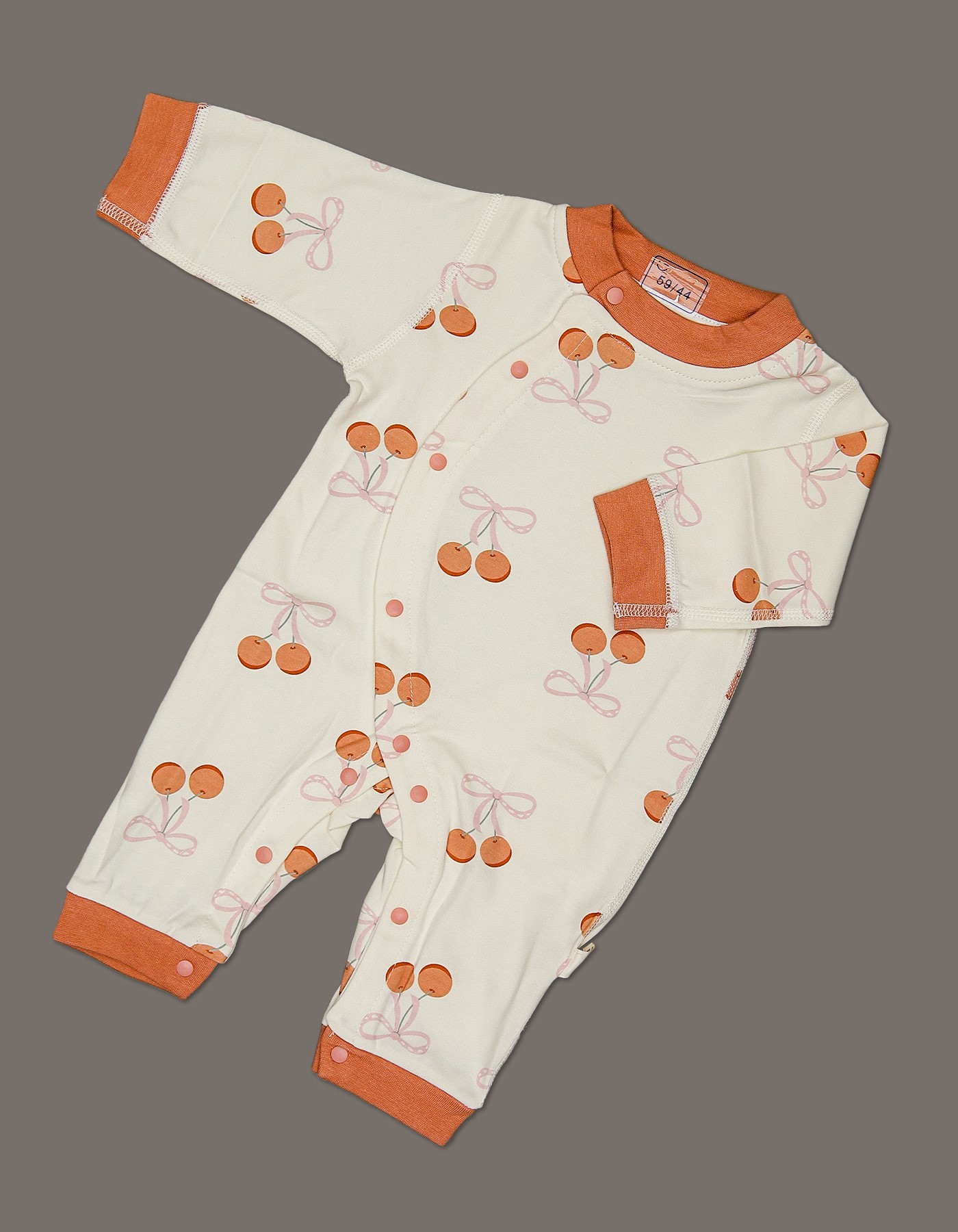 Add a burst of sweetness to your little one’s outfit with the Cherry Pop Baby Romper. Decorated with cute cherry prints and finished with warm orange trims, this romper is both playful and stylish. Its soft cotton fabric ensures gentle comfort, while the snap-button closure makes changing time quick and easy.