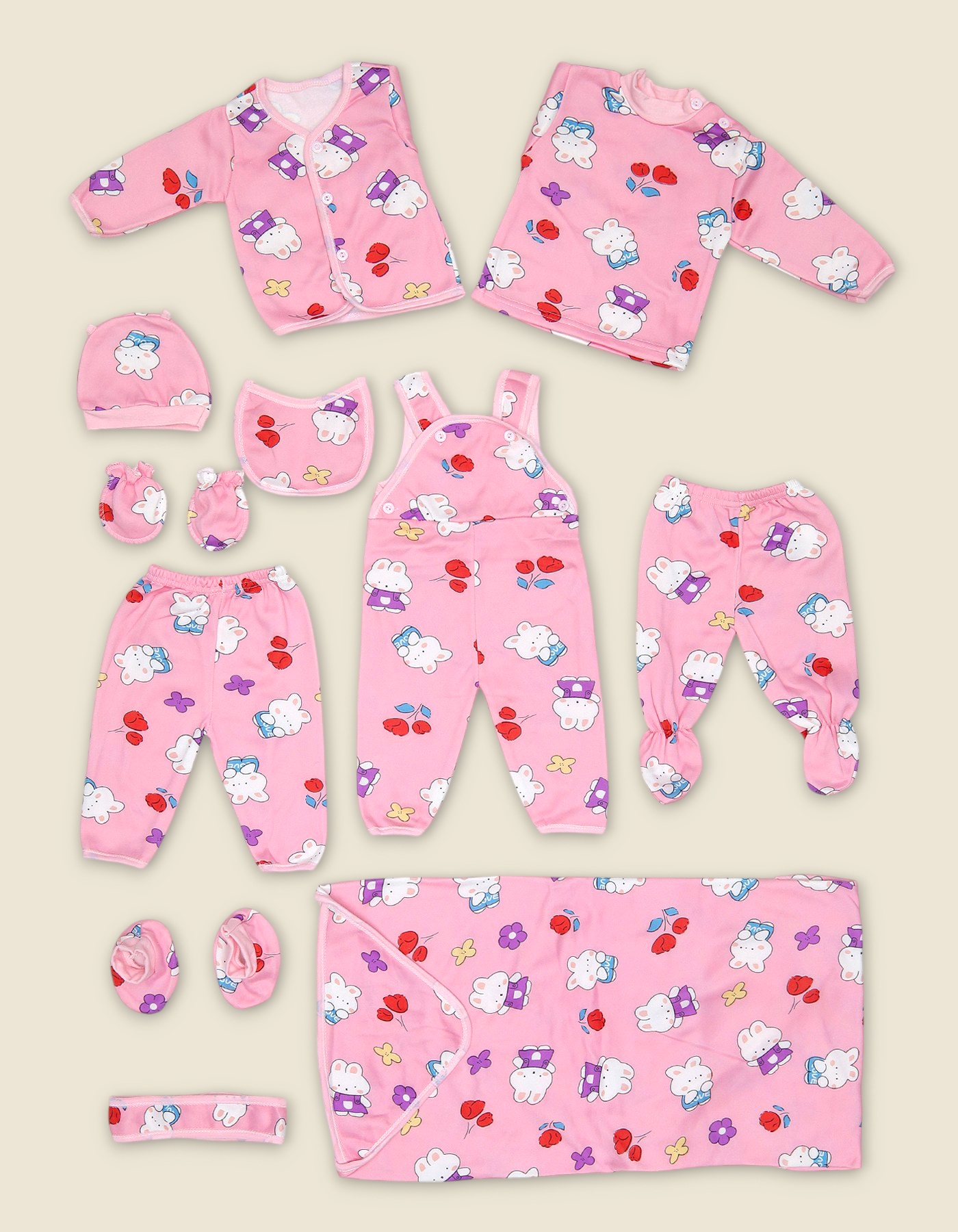 Extended starter set for newborns with cloud and cherry print. Includes full clothing and accessories for comfort, warmth and gifting.