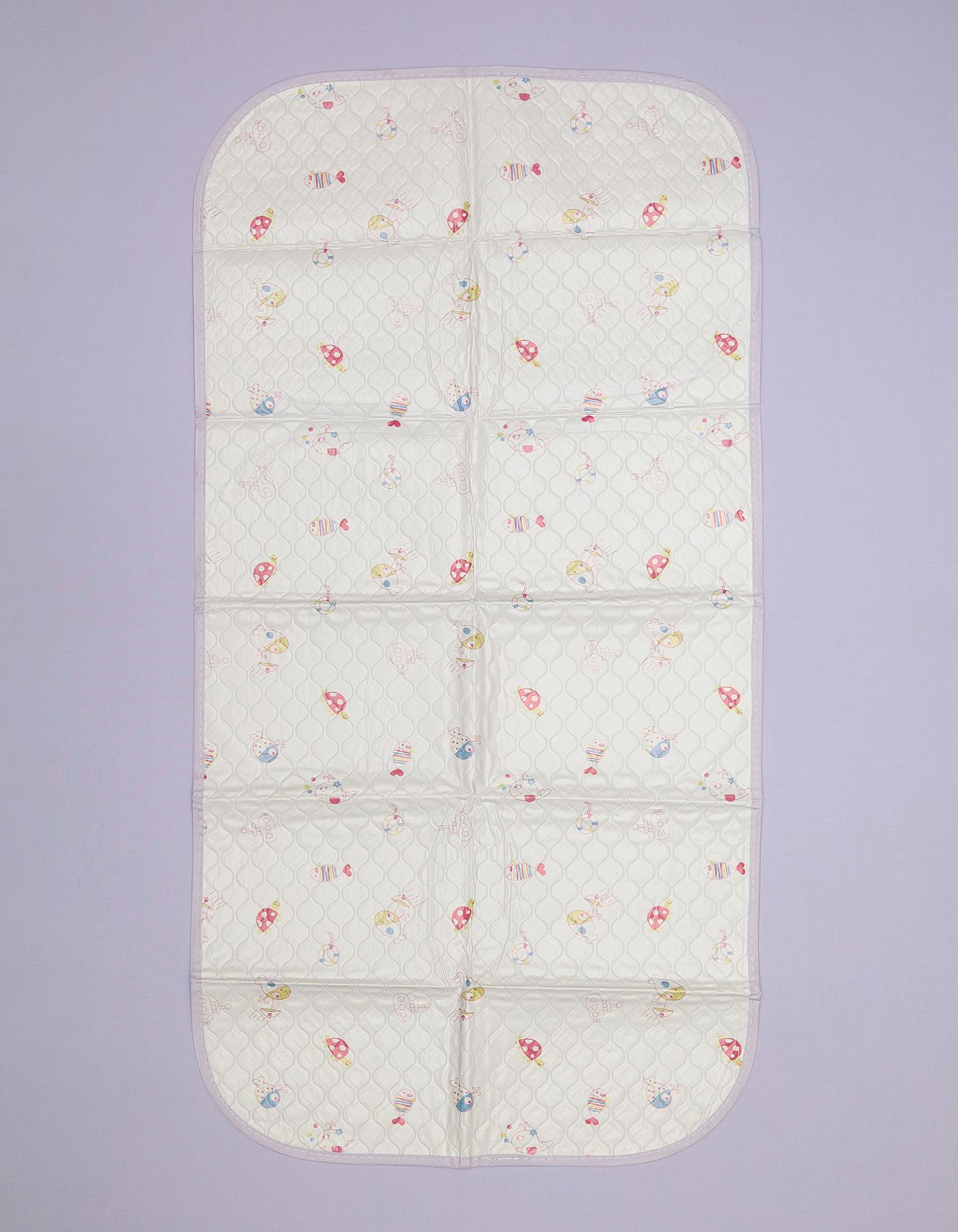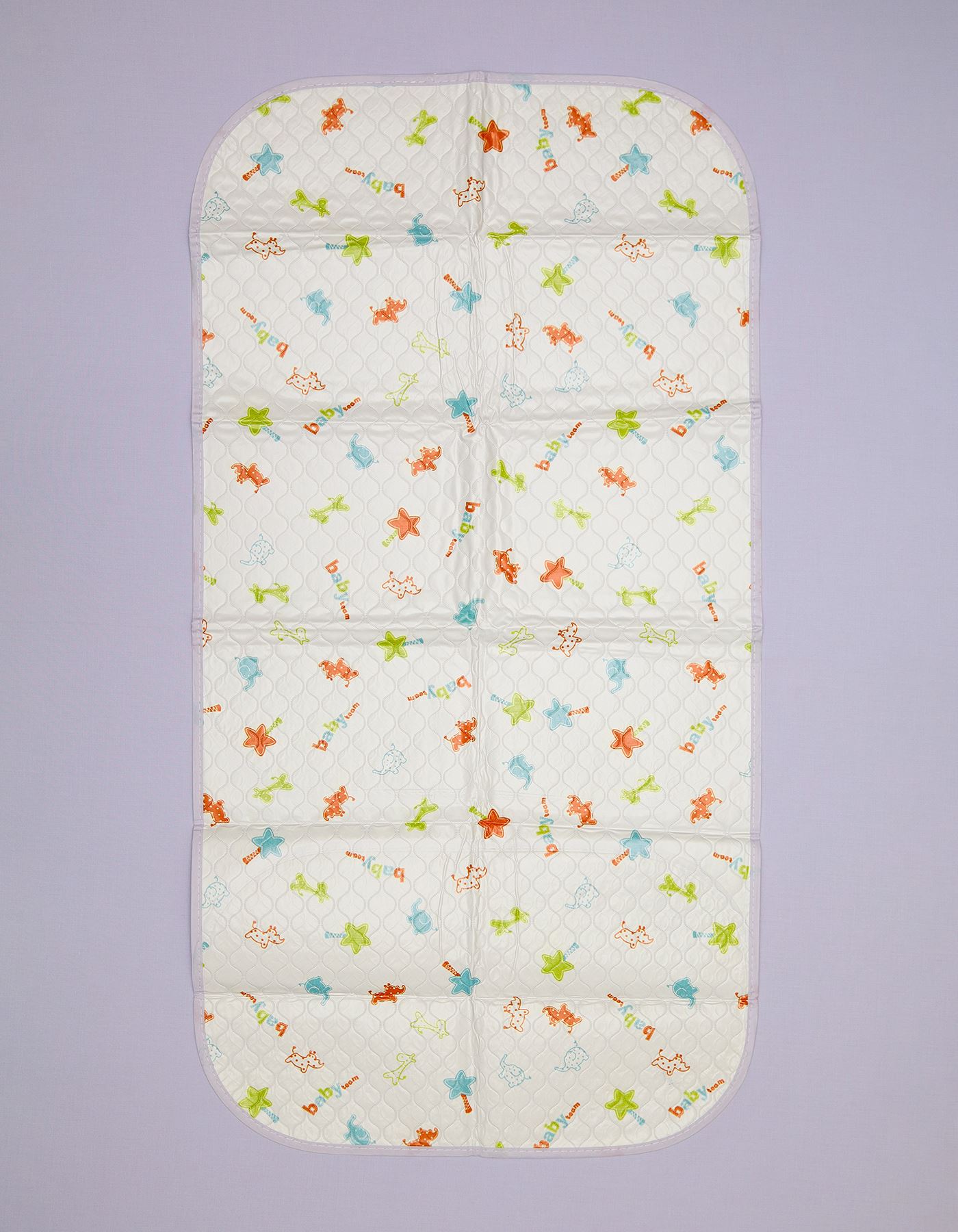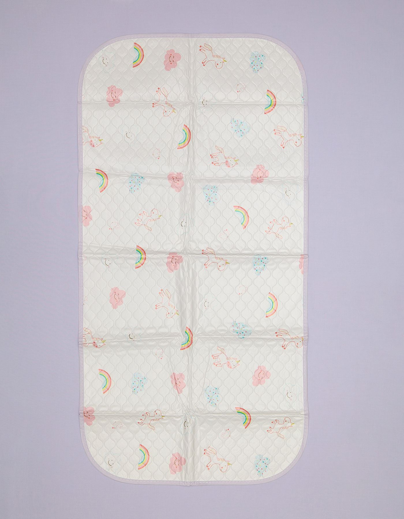 A soft quilted changing pad featuring playful dinosaurs and geometric shapes. Designed with stitched sections for extra comfort and a cheerful look that keeps babies engaged during diaper changes.