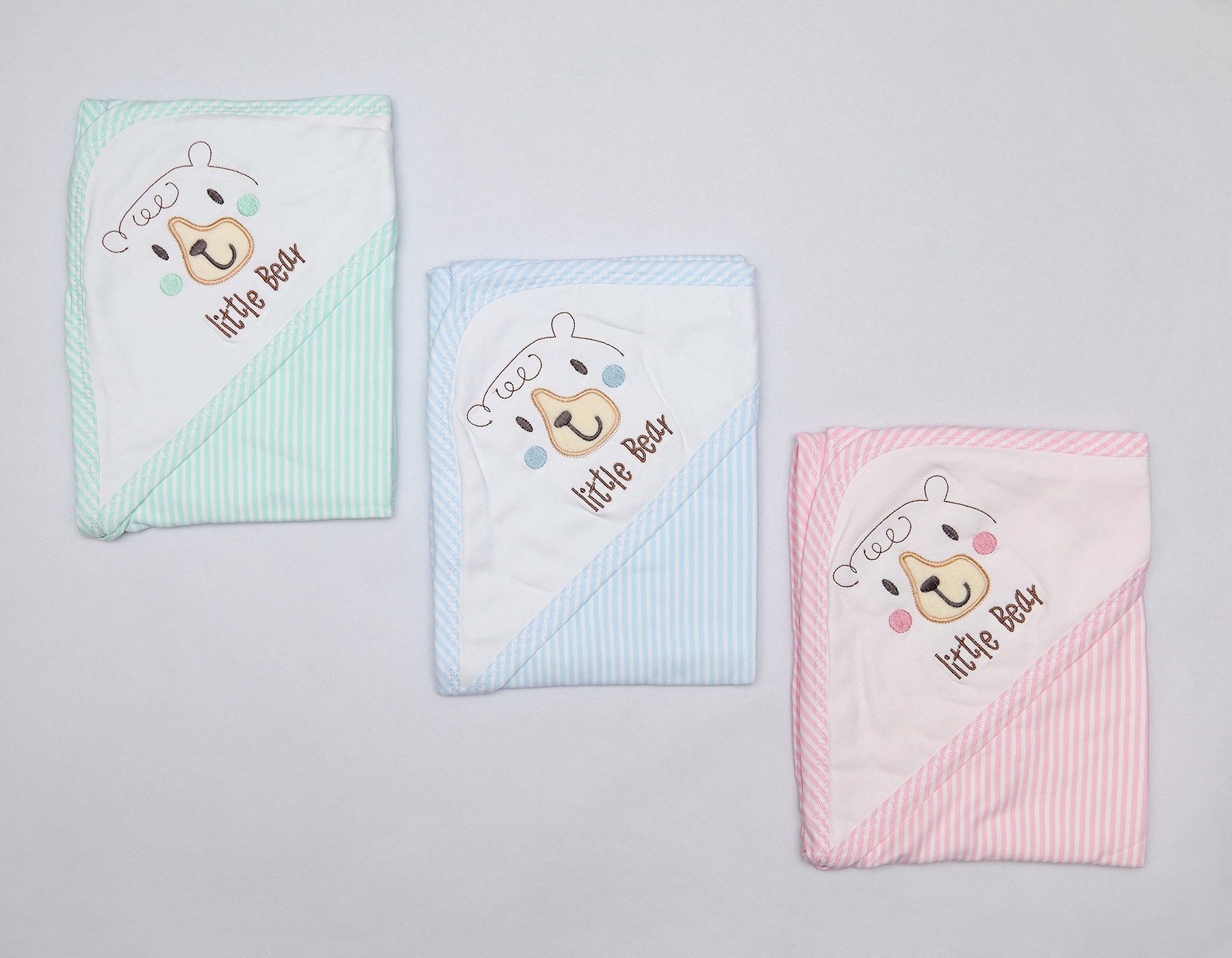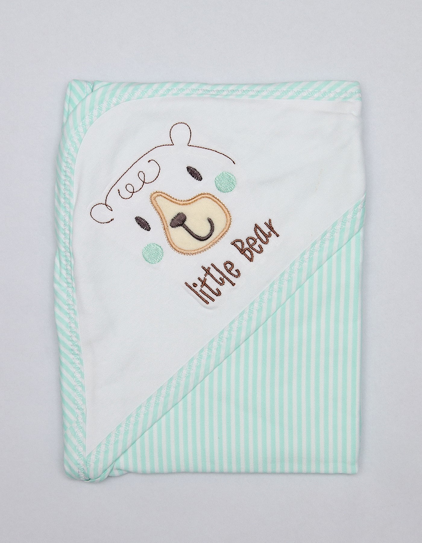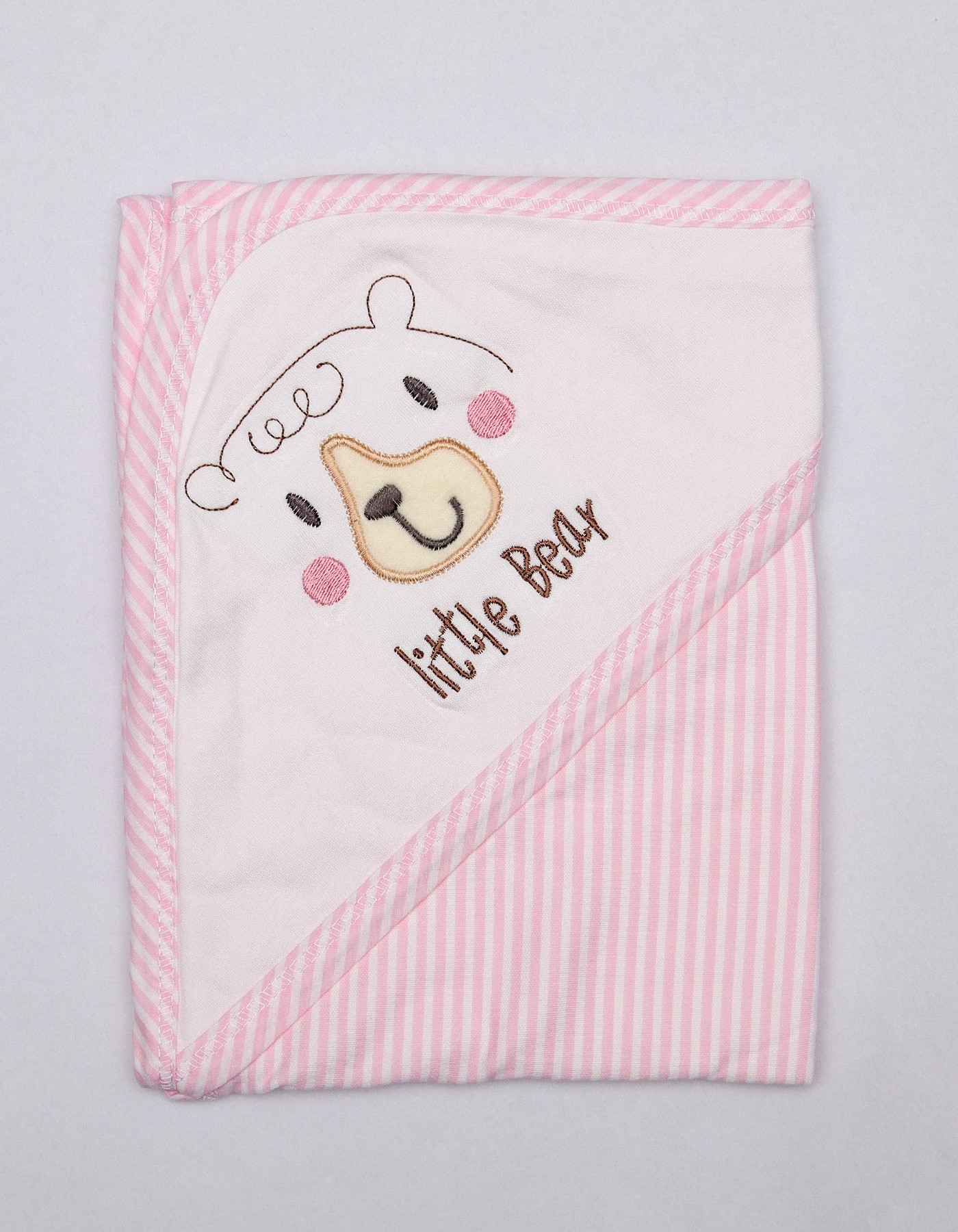 Soft hooded baby napkin with cute bear embroidery and gentle striped trim perfect for newborns and infants