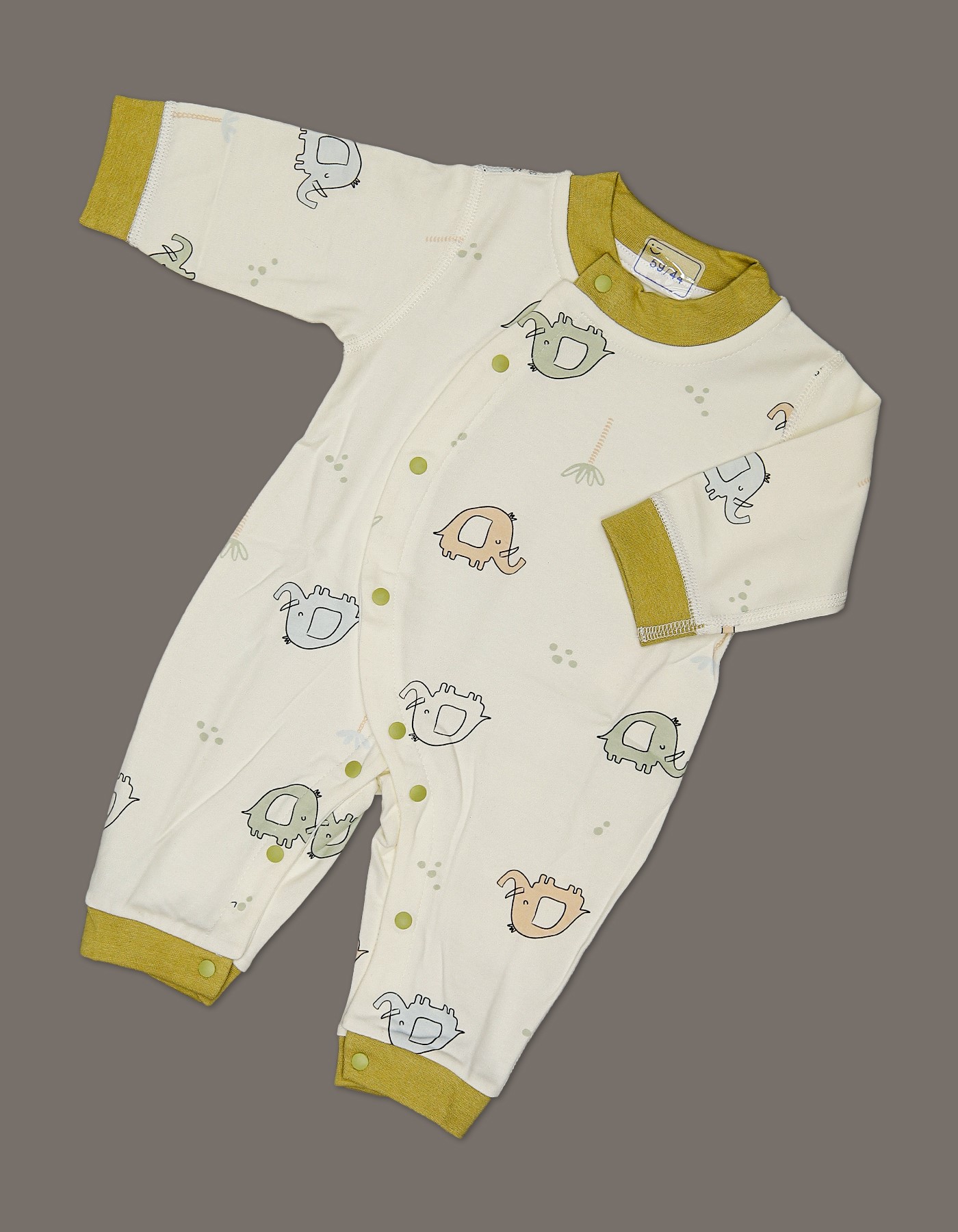 Bring playful charm to your little one’s wardrobe with the Elephant Parade Baby Romper. Adorned with adorable elephant prints in soft earthy tones, this romper is designed to keep your baby cozy and stylish. The olive-green cuffs and collar add a modern touch, while the soft cotton fabric ensures comfort for all-day wear.