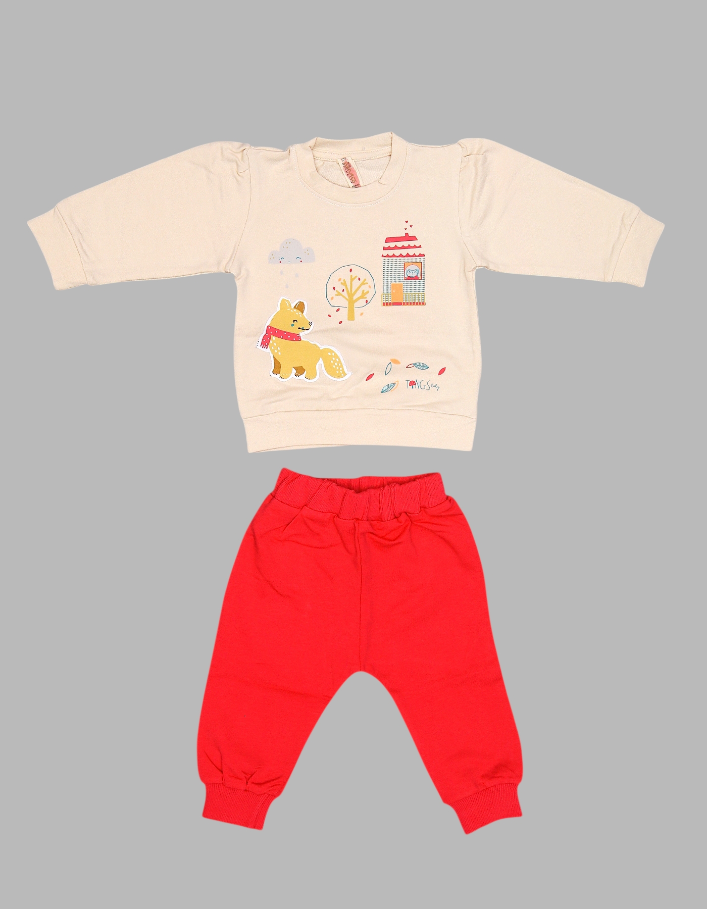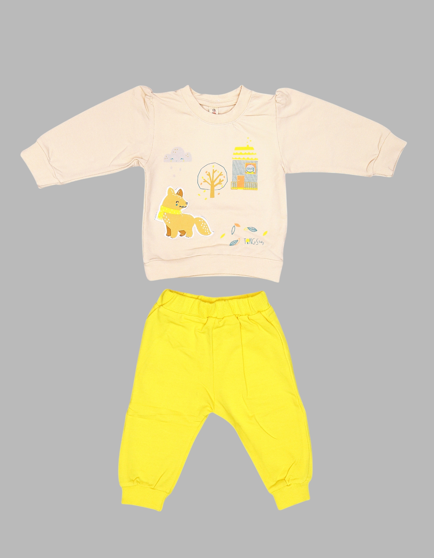 The Fox and Cottage Baby Outfit Set is a cute and cozy 2-piece set that brings charm and comfort to your baby everyday wear. Featuring a long-sleeve sweatshirt with an adorable fox, tree, and cottage print, paired with colorful matching jogger pants, this outfit is perfect for playtime, outings, or casual home wear. Available in C Green, Fuchsia, and Yellow color options to brighten up your little one wardrobe.