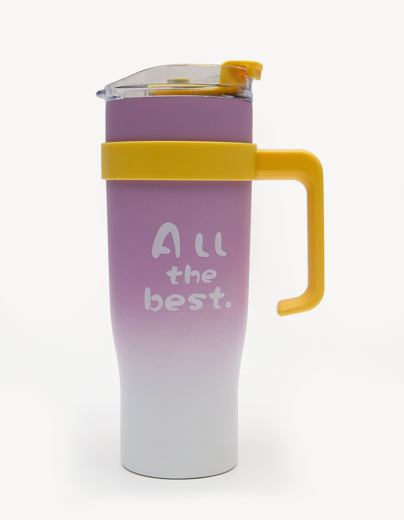 Stay refreshed in style with this colorful gradient travel mug. Designed with a sturdy handle, secure lid, and a sleek ombre finish, this mug is perfect for coffee, tea, or any beverage on the go. Available in green, purple, and blue, it’s both practical and trendy for daily use, travel, or gifting.