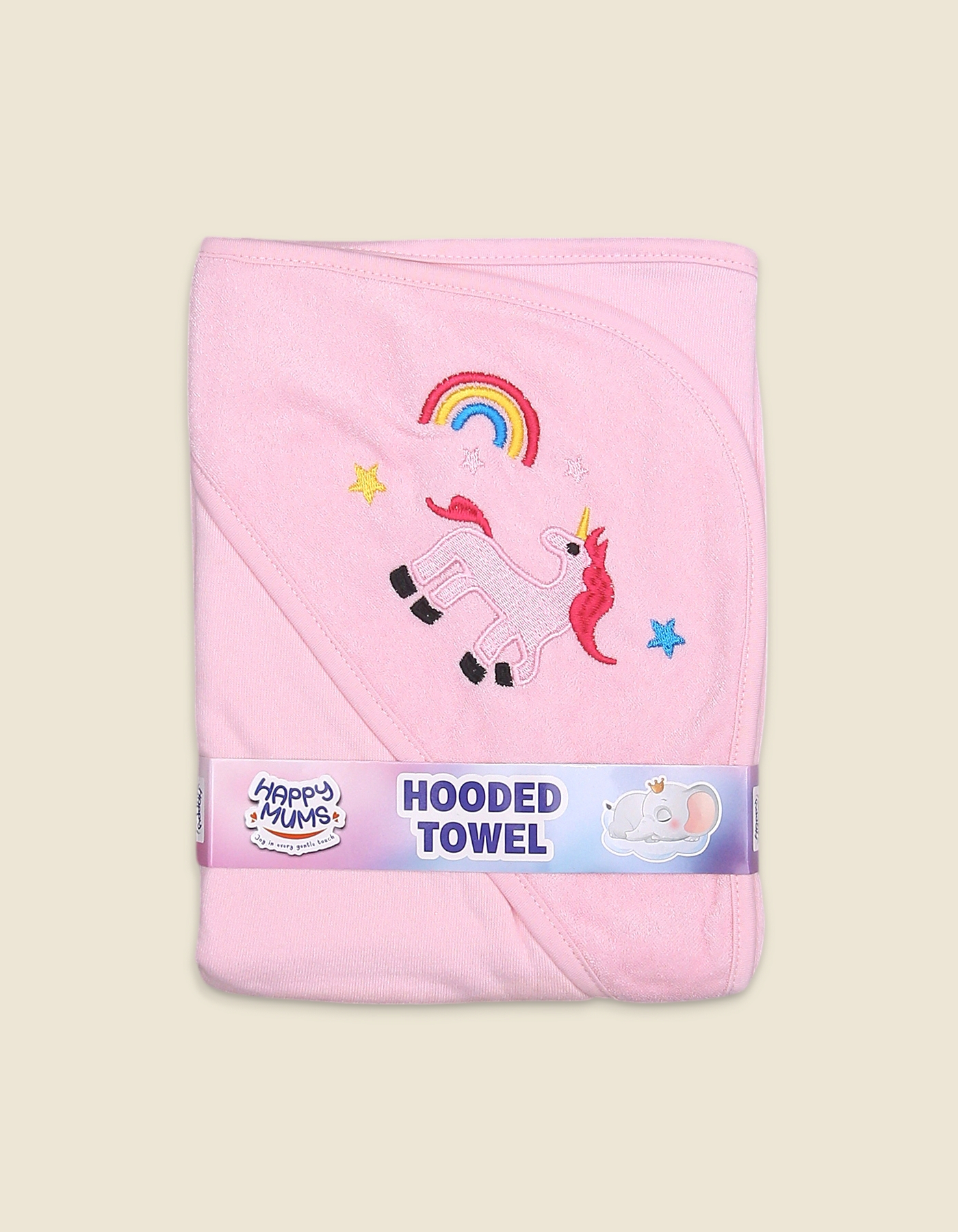 Turn bath time into magical fun with this baby pink hooded towel featuring a cute unicorn, rainbow, and star embroidery. Crafted from soft and absorbent fabric, it keeps your baby warm and cozy while drying quickly.