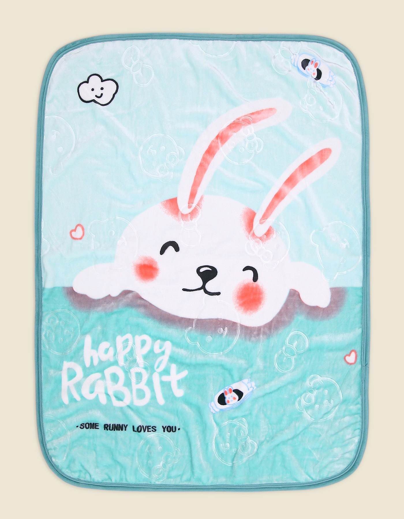 The Happy Rabbit Baby Blanket is designed to bring warmth, comfort, and joy to your little one. Made from super-soft fleece material, it ensures a gentle and cozy feel on delicate baby skin. Featuring an adorable rabbit cartoon design with cheerful colors, this blanket is both fun and practical. Available in Parrot Green and Sky Blue, its the perfect companion for nap time, stroller rides, or bedtime snuggles. The lightweight yet warm fabric makes it versatile for all seasons.