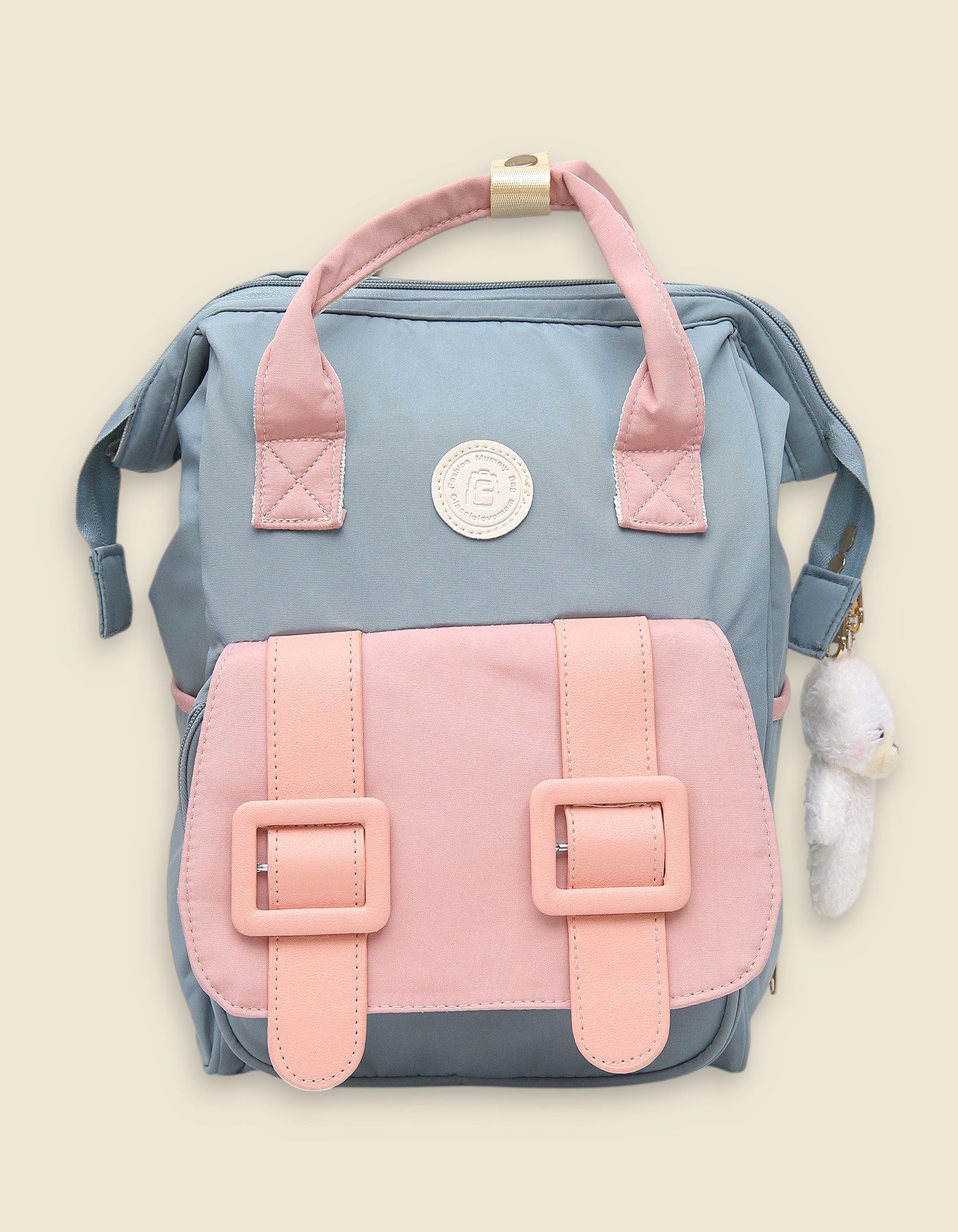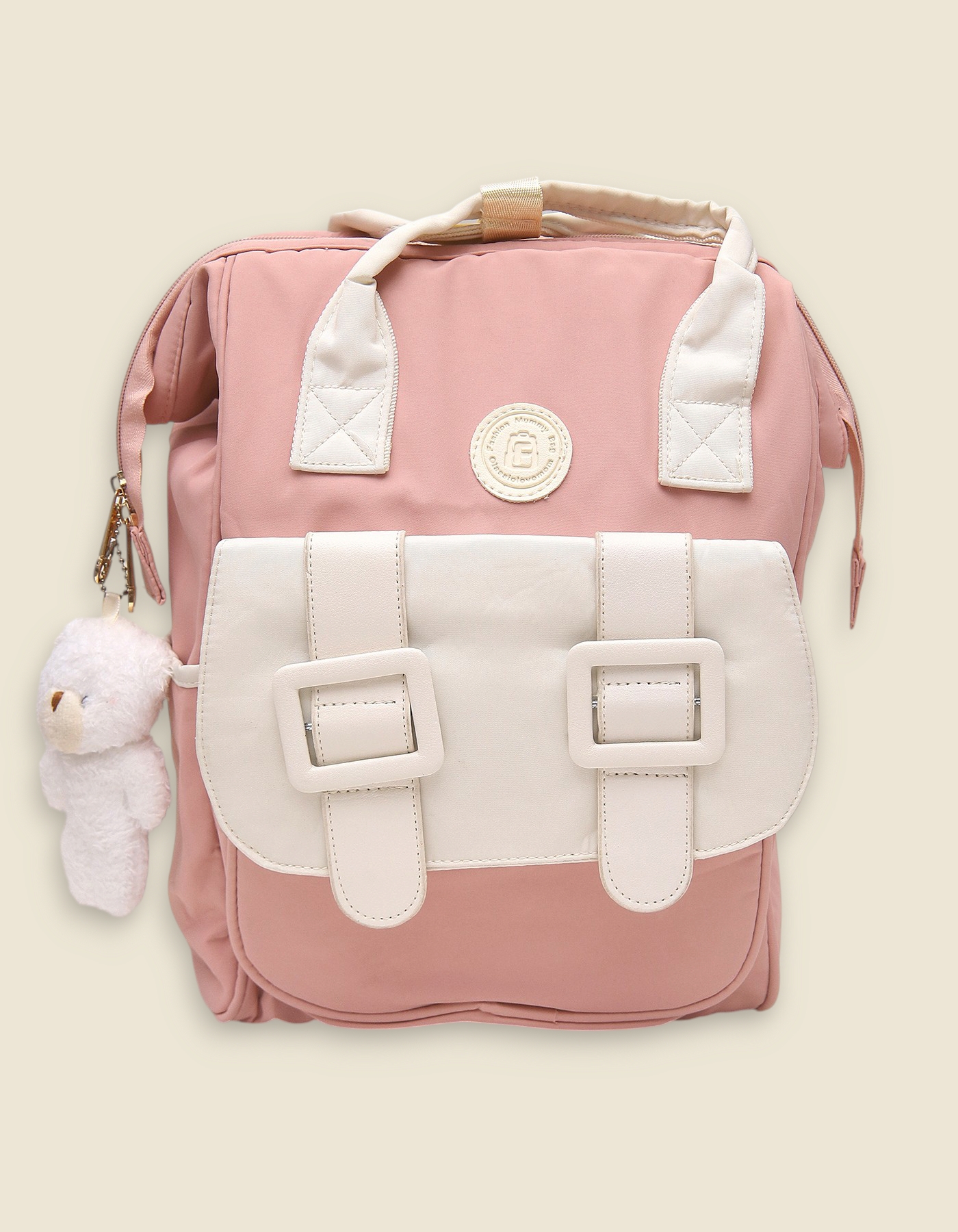 The Kids Cartoon Buckle School Bag is a stylish and functional backpack designed for young children. Featuring a cute teddy keychain accessory and trendy dual-buckle front pocket, it combines both fashion and practicality. The spacious main compartment offers plenty of room for books, lunch boxes, and stationery, while the durable material ensures long-lasting use. Available in Baby Pink and Grey with Pink Accents, this school bag is perfect for kids who love a fun yet organized school routine.