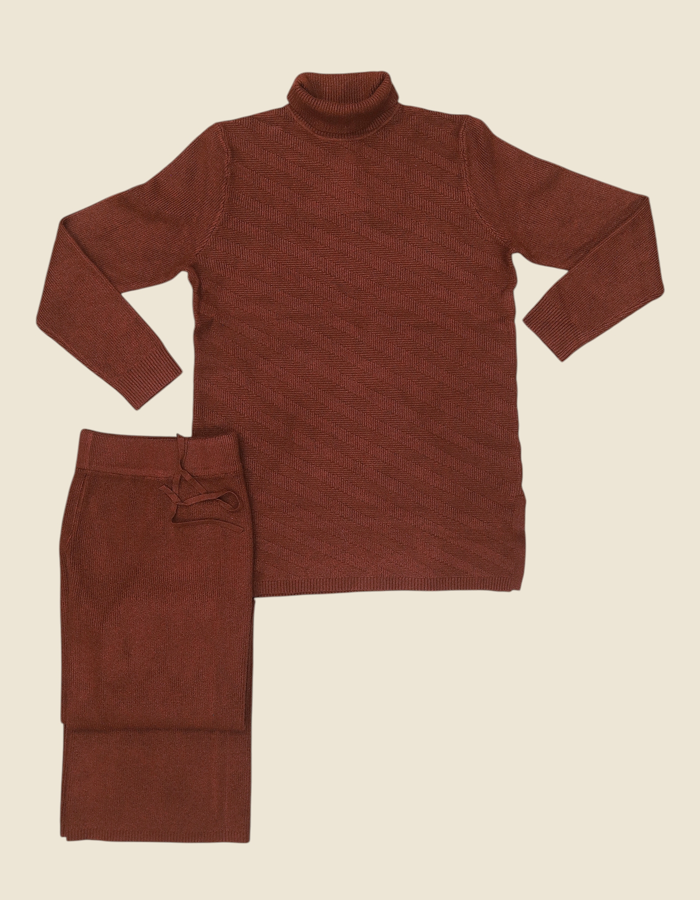 2-Piece Set: Includes a full-sleeve turtle-neck sweater and matching trousers.