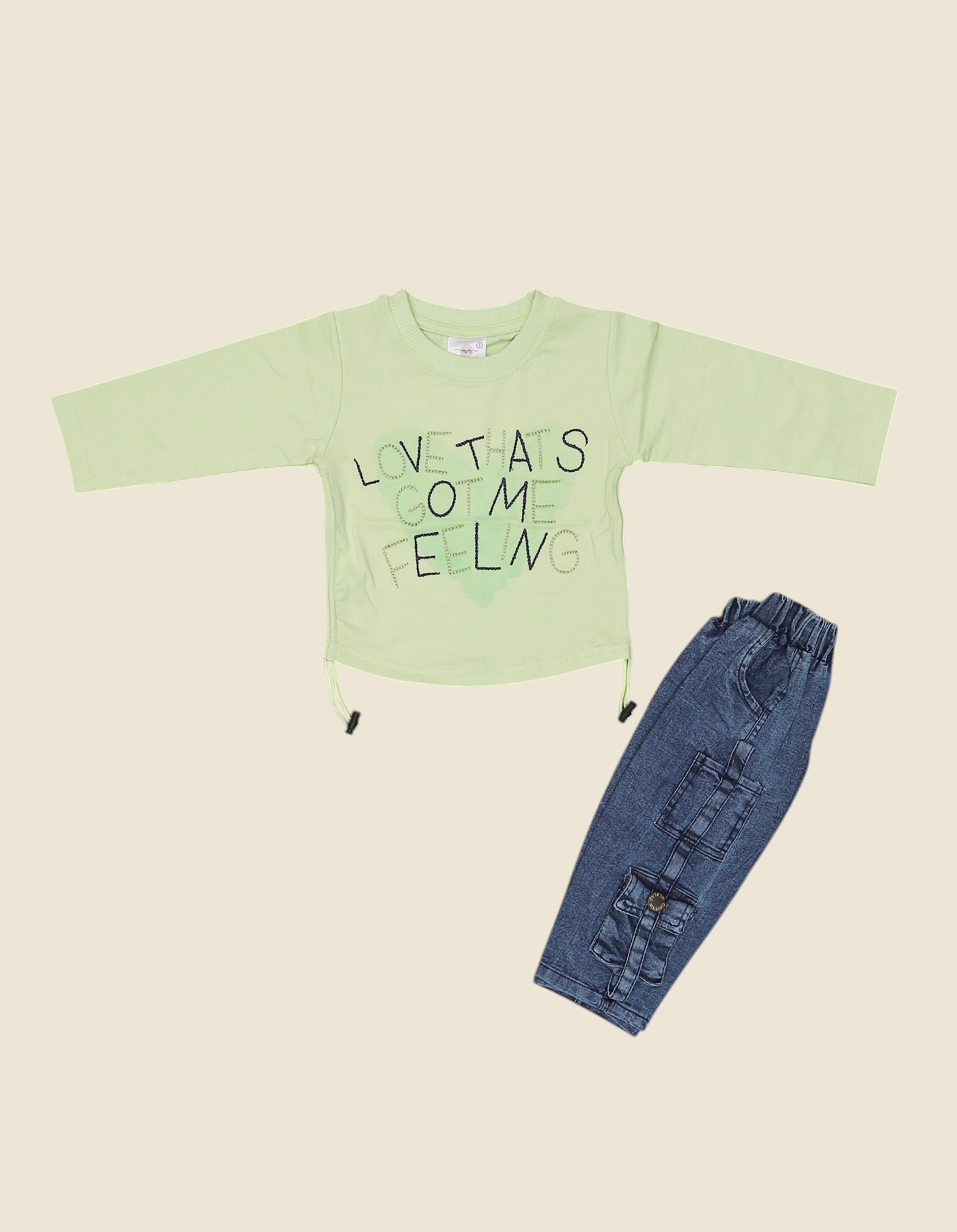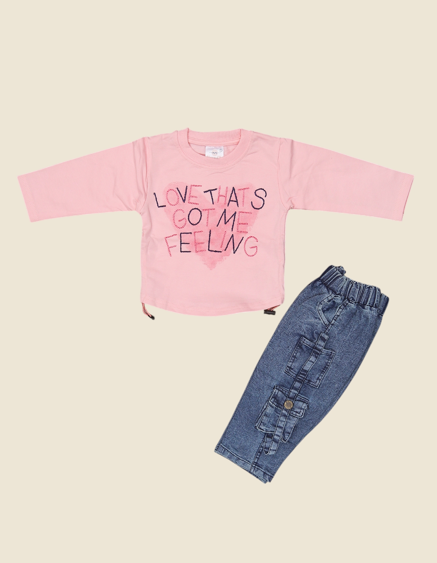 The Love Feeling Baby Outfit Set is a trendy and comfortable outfit designed for little explorers. Featuring a long-sleeve printed top with playful LOVE THATS GOT ME FEELING text and matching denim-style jogger pants with utility pockets, this set combines fashion with function. Perfect for everyday wear, casual outings, and playdates, it keeps your baby looking cool and stylish. Available in Green, Pink, and Purple.