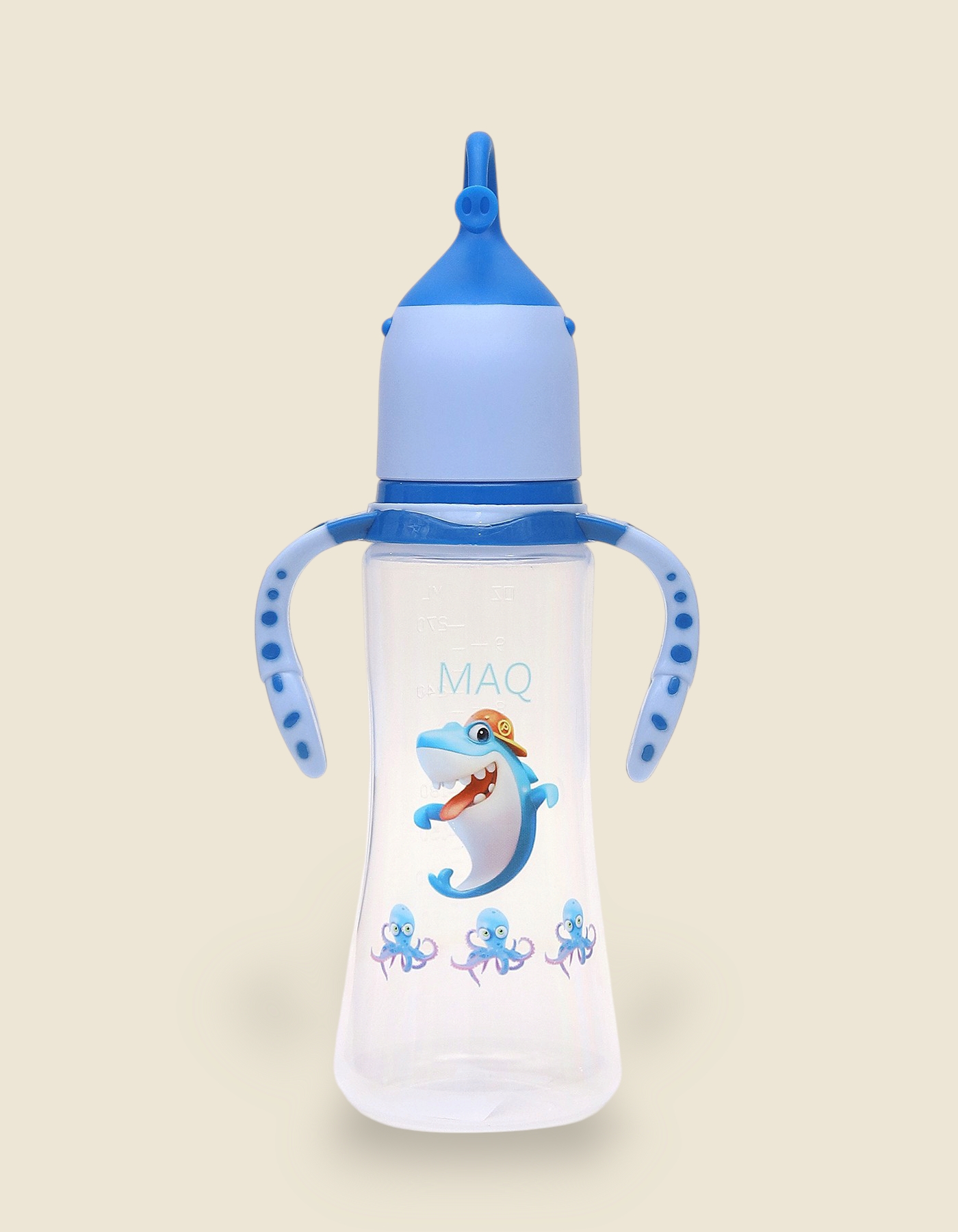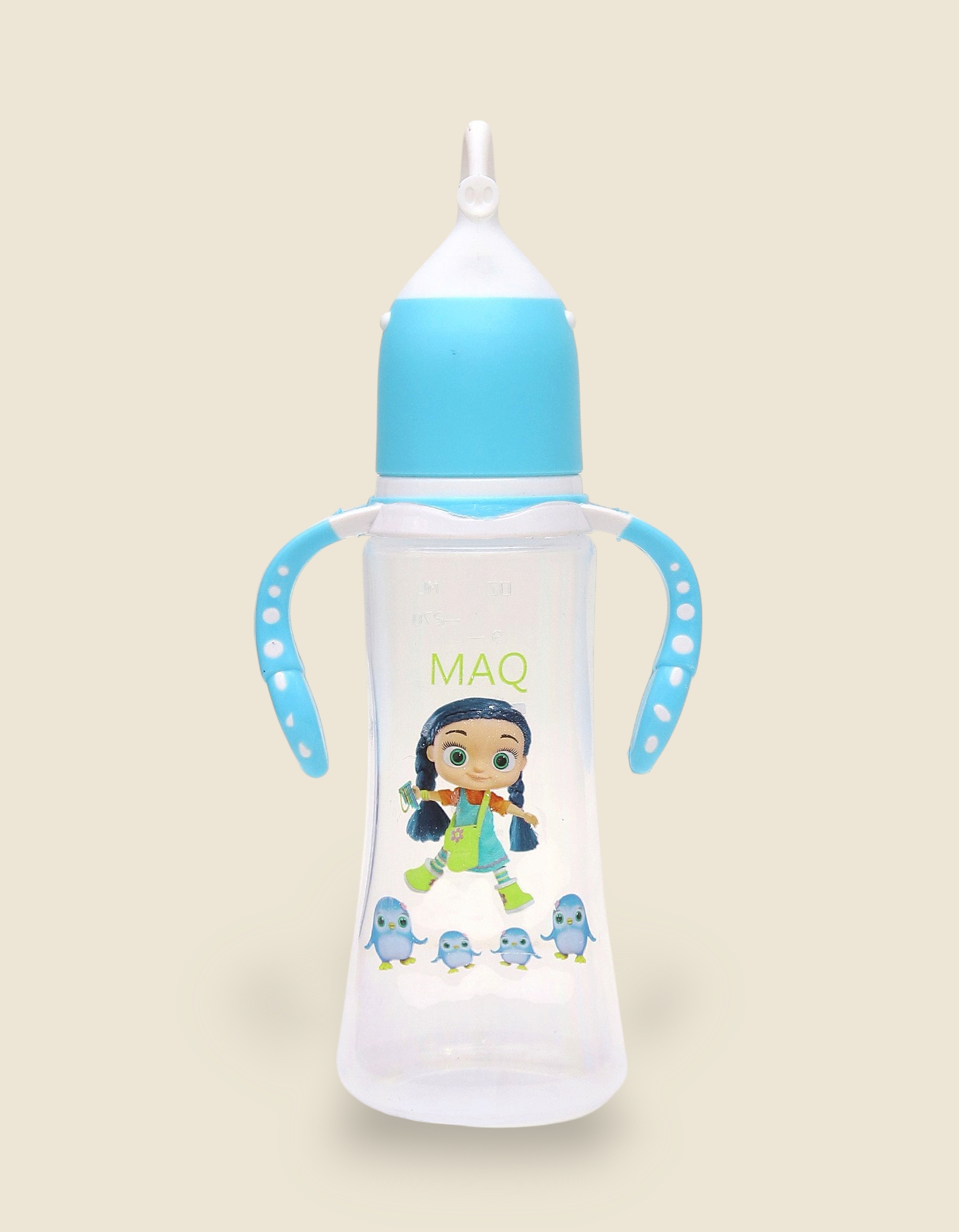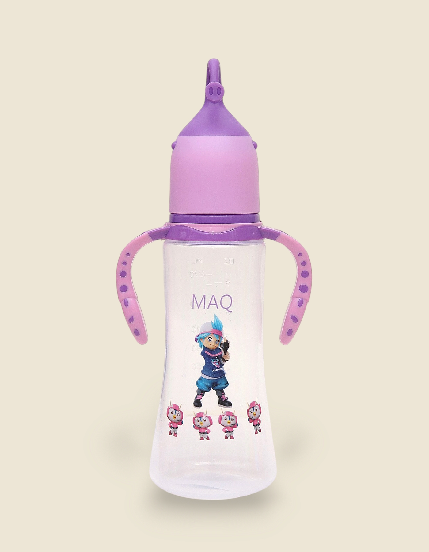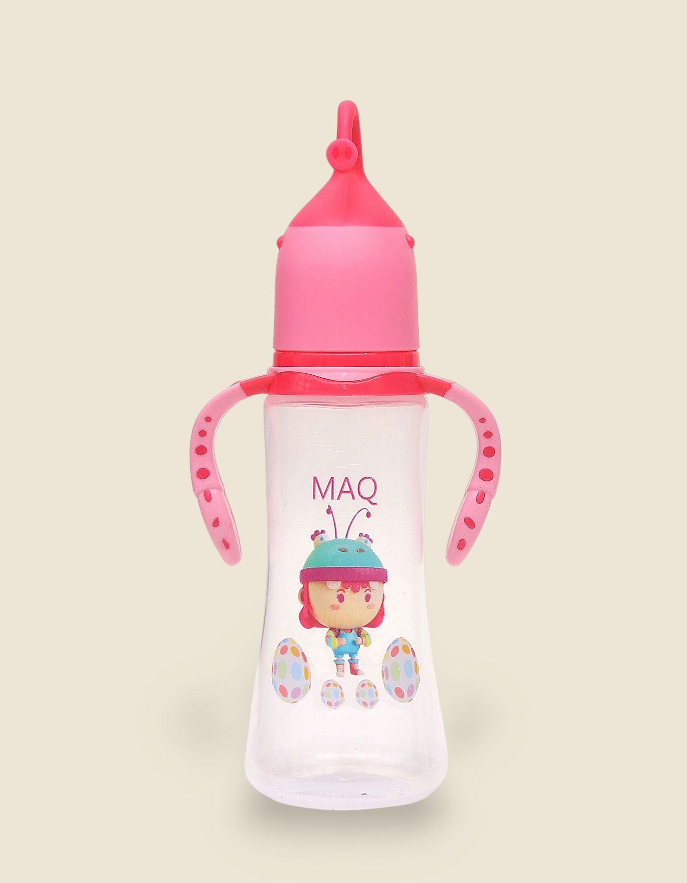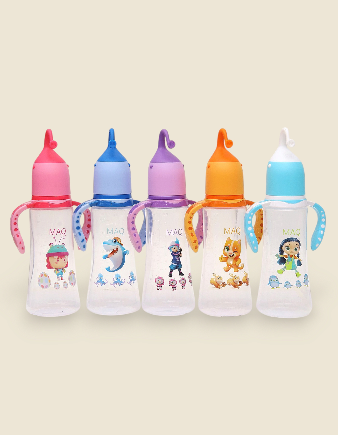 The MAQ cartoon training feeder bottles are designed to make self-feeding fun and easy for toddlers. With bright cartoon prints and dual side handles, these bottles help little hands grip comfortably while drinking. The durable, BPA-free material ensures safety, while the spill-proof spout prevents messes. Available in 5 vibrant colors and character prints, these bottles are the perfect mix of safety, function, and fun.