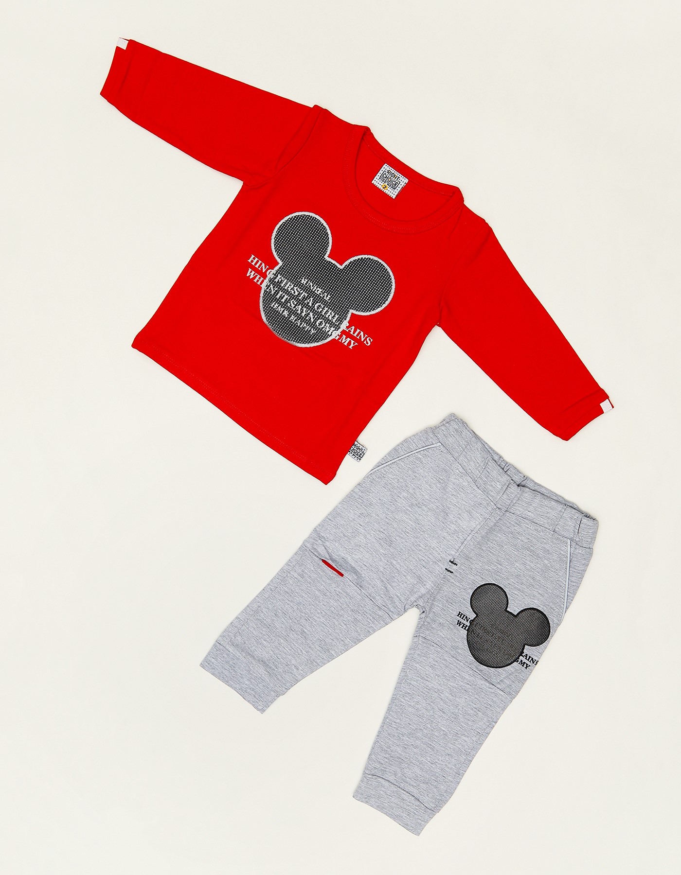 Trendy and comfy 2-piece outfit featuring a bold cartoon mouse graphic sweatshirt with matching jogger pants – perfect for casual and playful looks.