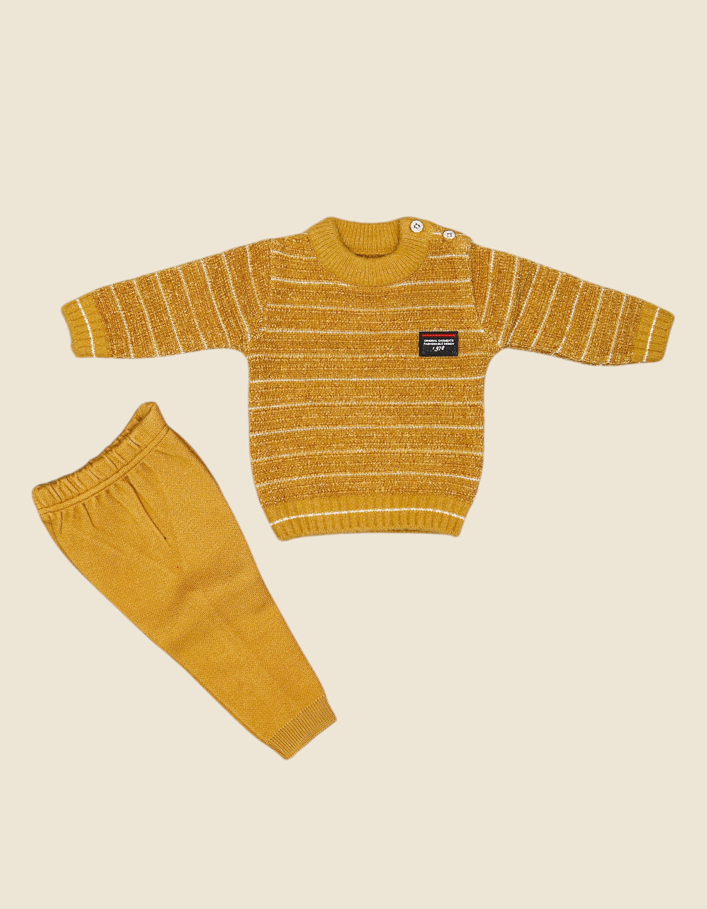 Keep your little one warm and stylish with this Newborn Woolen Striped Suit. Designed with a modern striped sweater and matching woolen pants, this cozy two-piece set is perfect for winter wear. The premium knit fabric ensures warmth without compromising on comfort, while the easy button closure at the shoulder makes dressing hassle-free. Available in multiple attractive colors, its a must-have for your baby winter wardrobe.