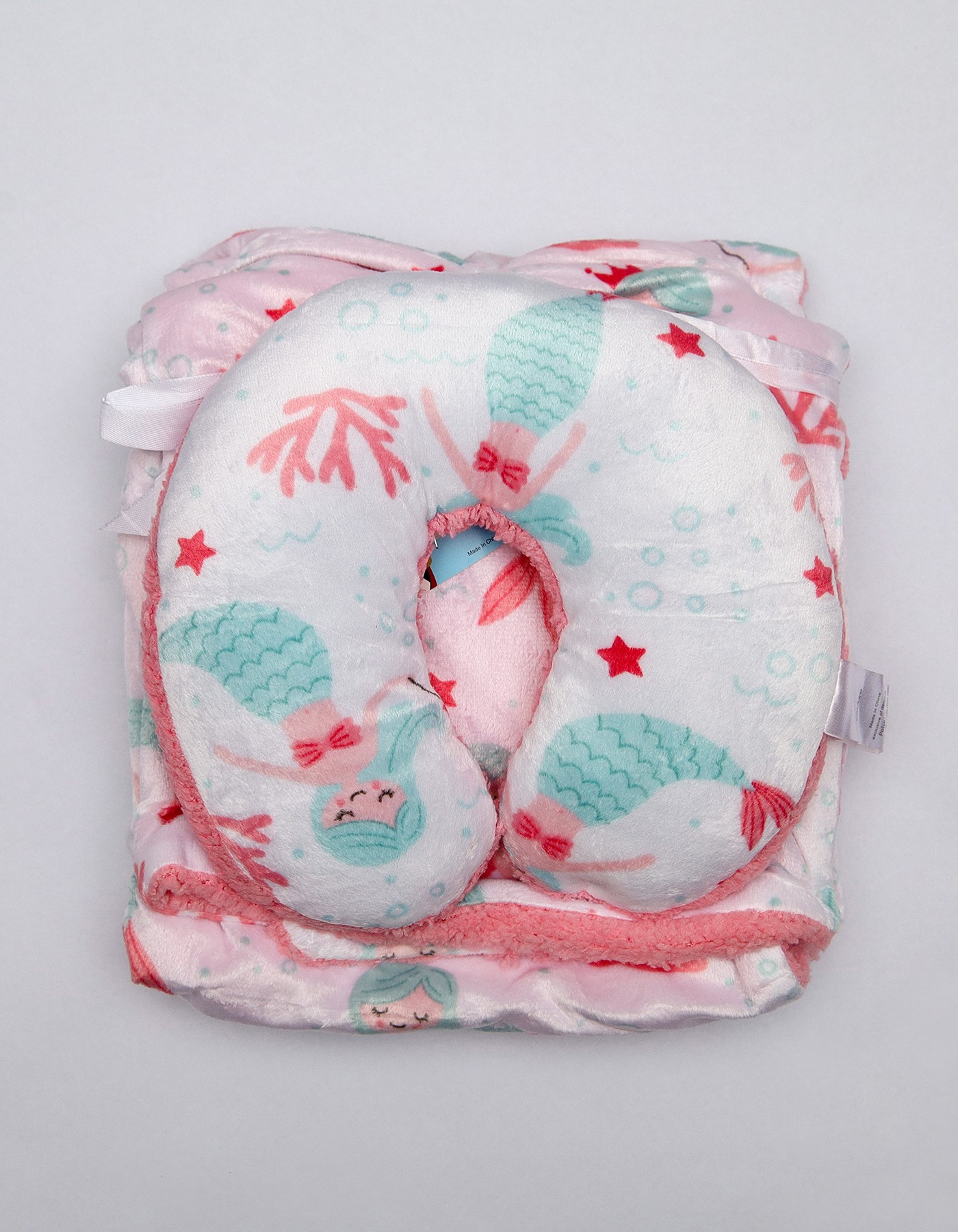 The 2-Piece Baby Pillow Set is made from Fleece with polyester filling, designed to prevent flat head syndrome. This soft, breathable, and washable set includes 1 head-shaping pillow and 1 neckroll cushion, suitable for babies 1 month to 1 year. Available in multicolor random designs.