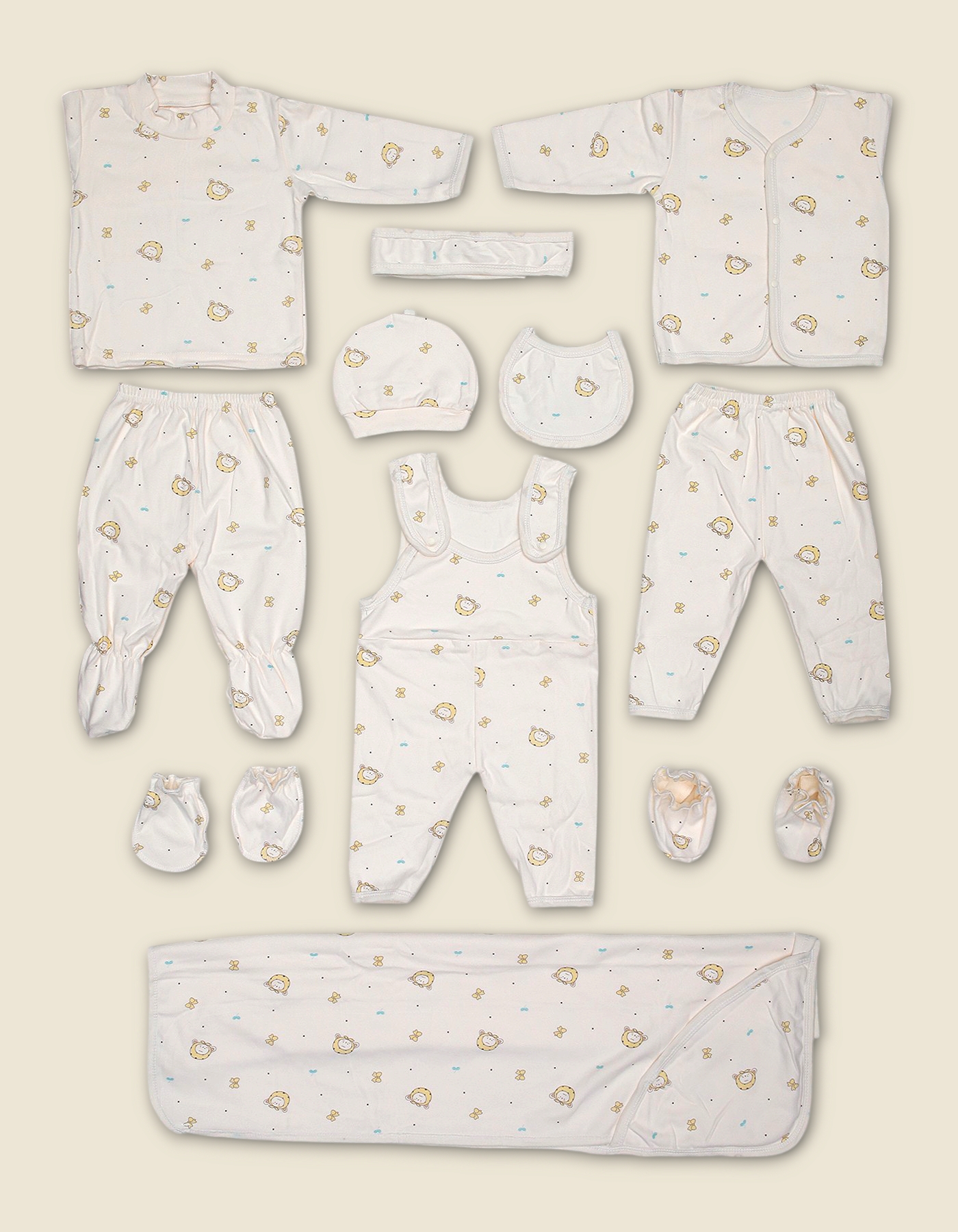 Complete newborn starter set with cartoon lion and star print. Perfect for gifting and daily baby essentials