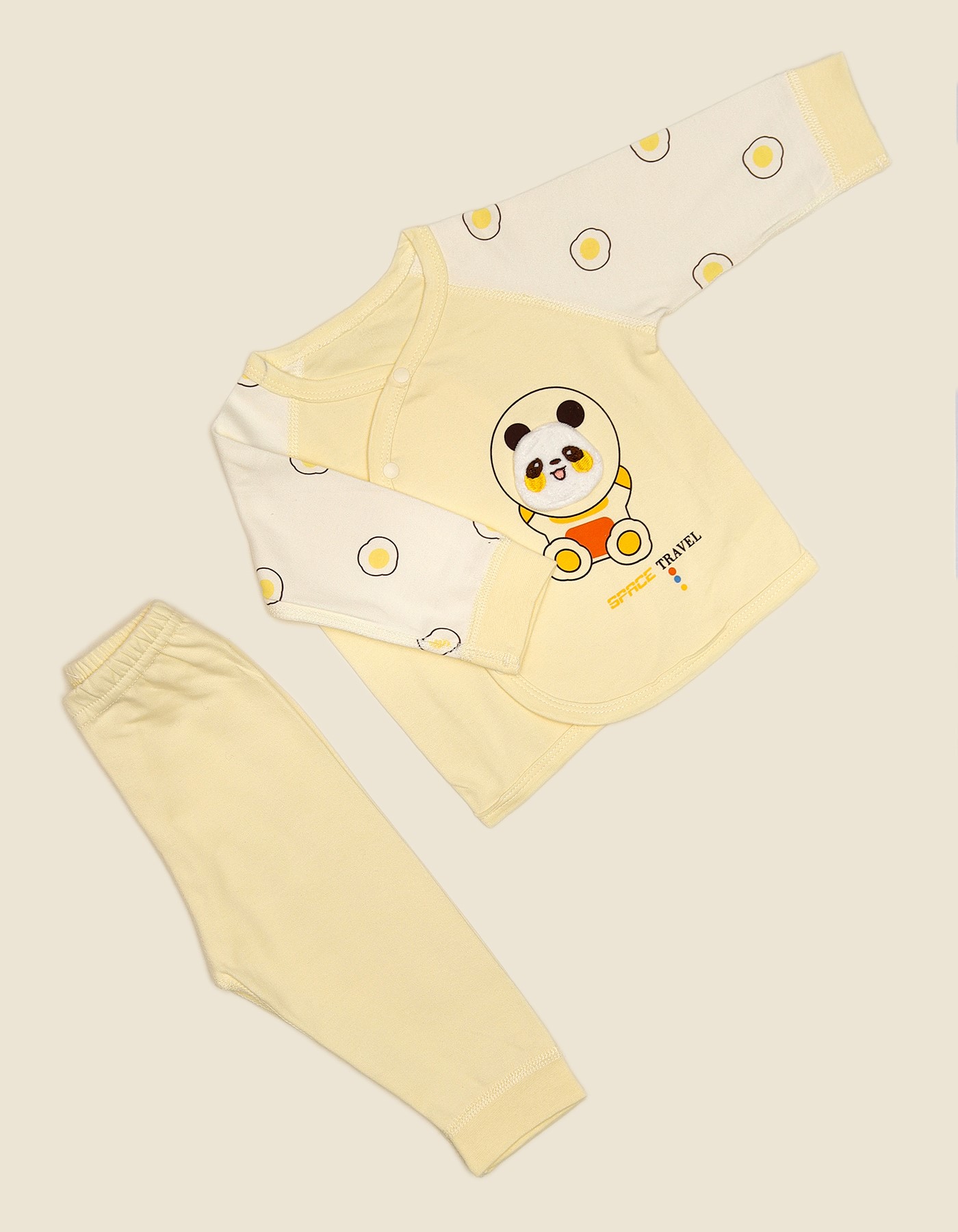 Dress your little one in this adorable two-piece newborn suit featuring a cute panda astronaut print and playful egg-patterned sleeves. The set includes a button-down top and matching soft pants, perfect for everyday comfort. Crafted from gentle, breathable cotton fabric, it keeps your baby cozy and irritation-free throughout the day.