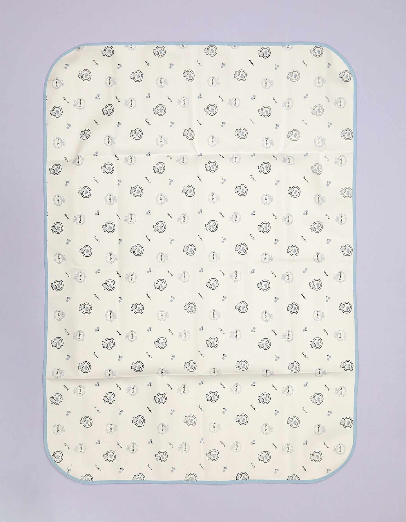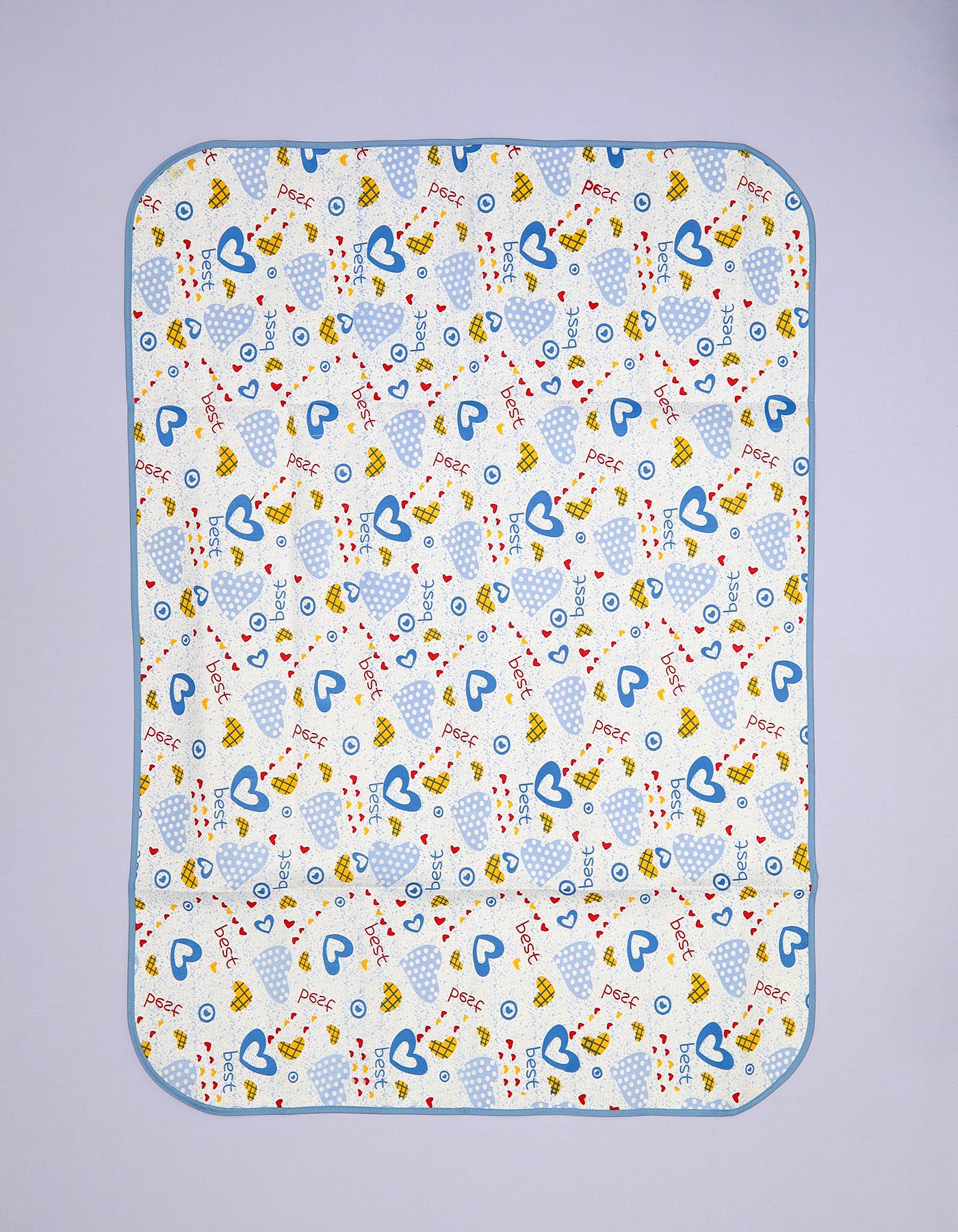 A soft baby mat with cheerful mushrooms, hearts, and flowers. Designed with rounded corners and orange trim, perfect for playtime or nap time.