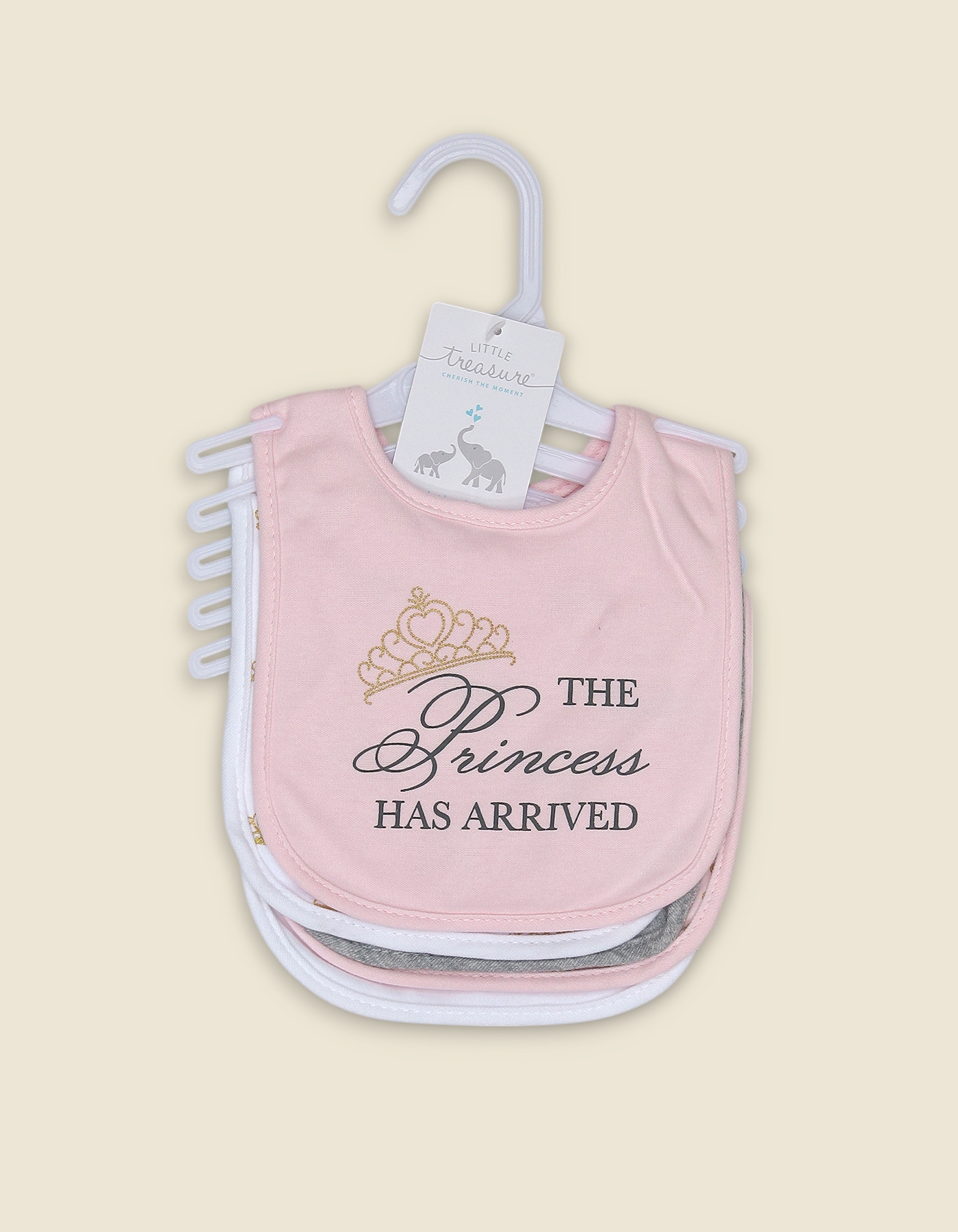 Soft and absorbent baby bibs with celebratory princess design. Perfect for newborn girls, daily feeding and gifting.