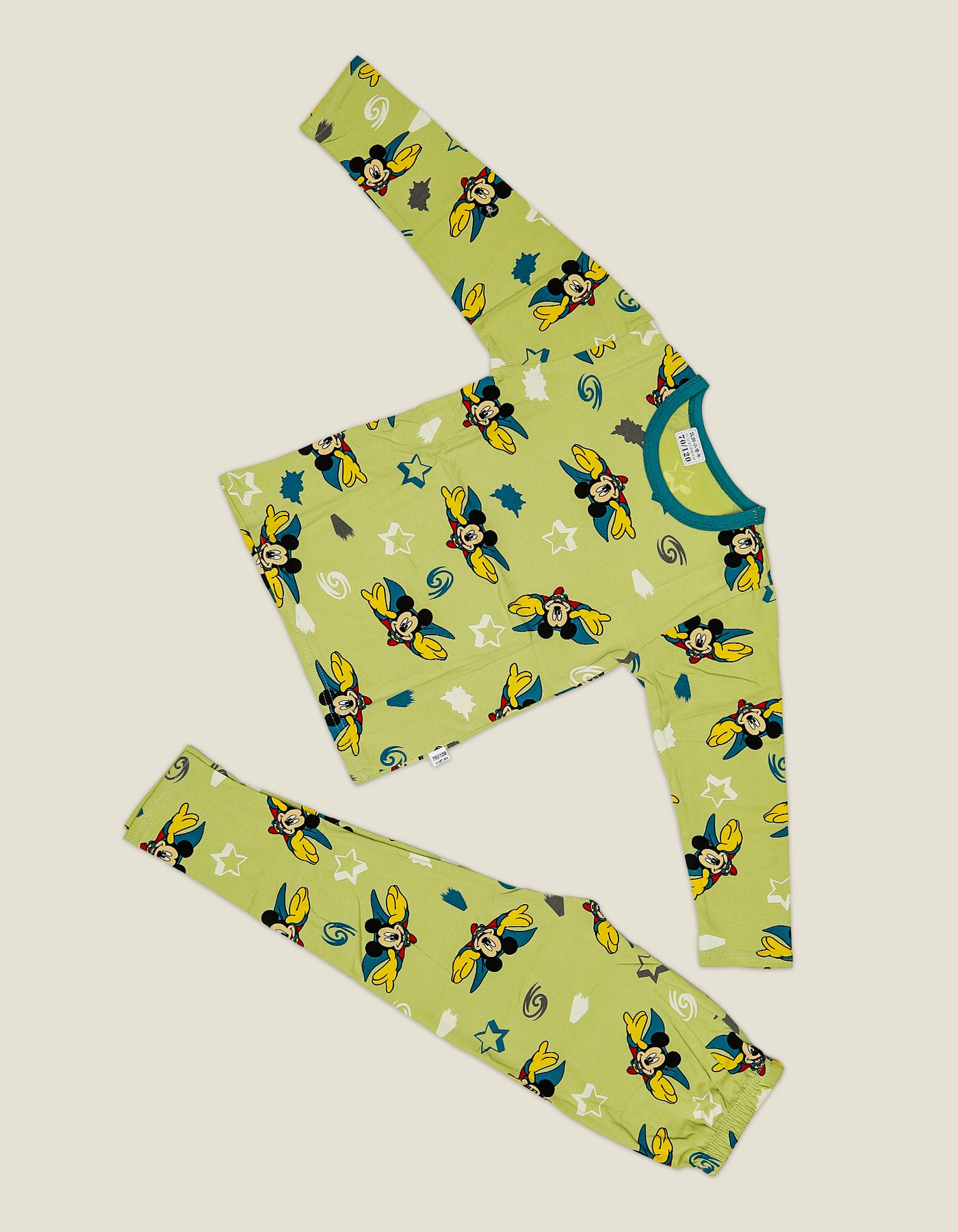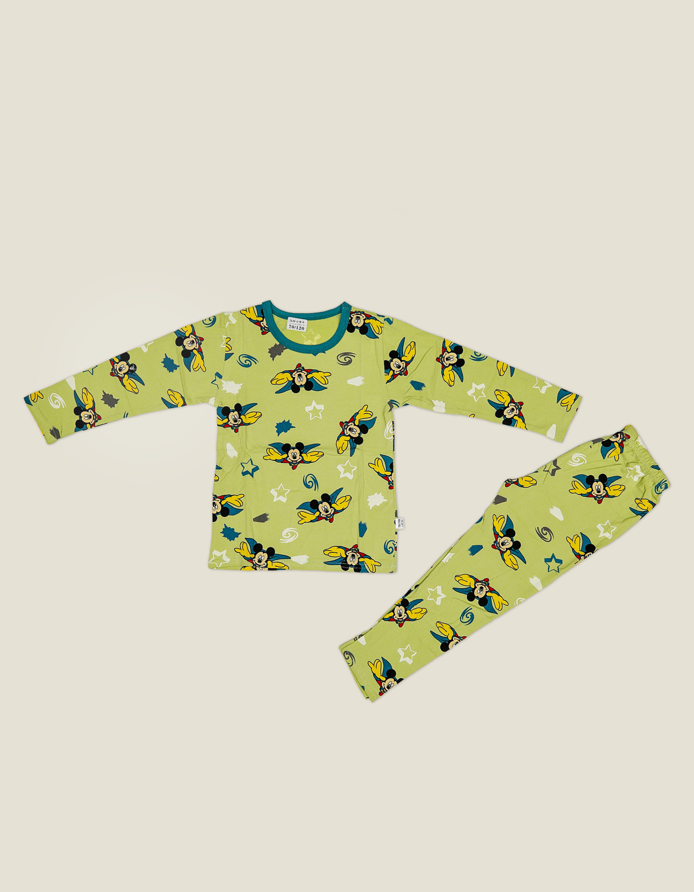 Make bedtime fun and cozy with this playful Green Cartoon Bee Pajama Set. Crafted from soft, breathable fabric, it features a long-sleeve top and matching pants covered in cute bee and star prints. The cheerful green color adds a lively touch, while the elastic waistband ensures a comfy fit. Perfect for sleep, lounging, or casual play at home.