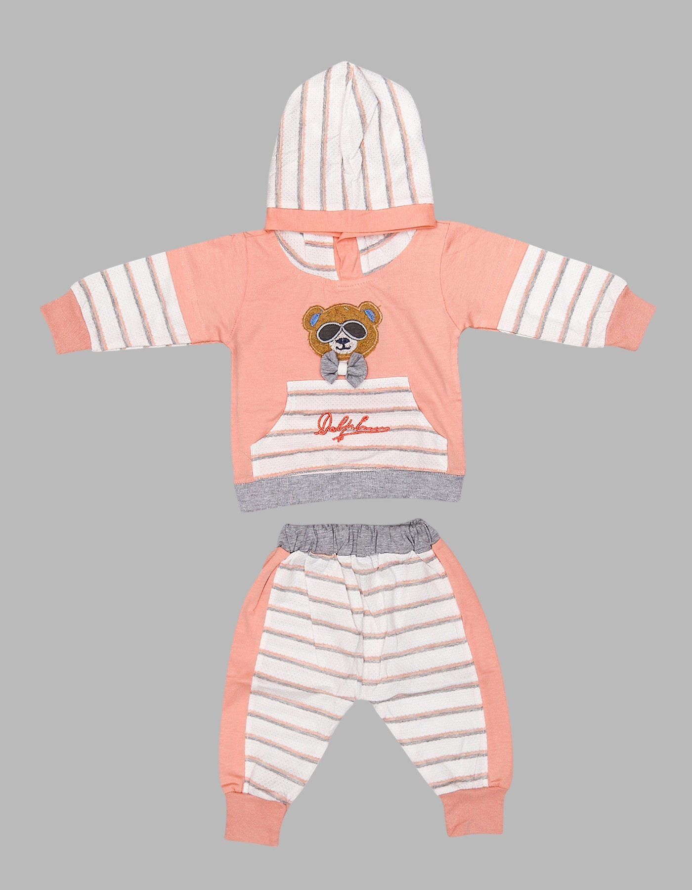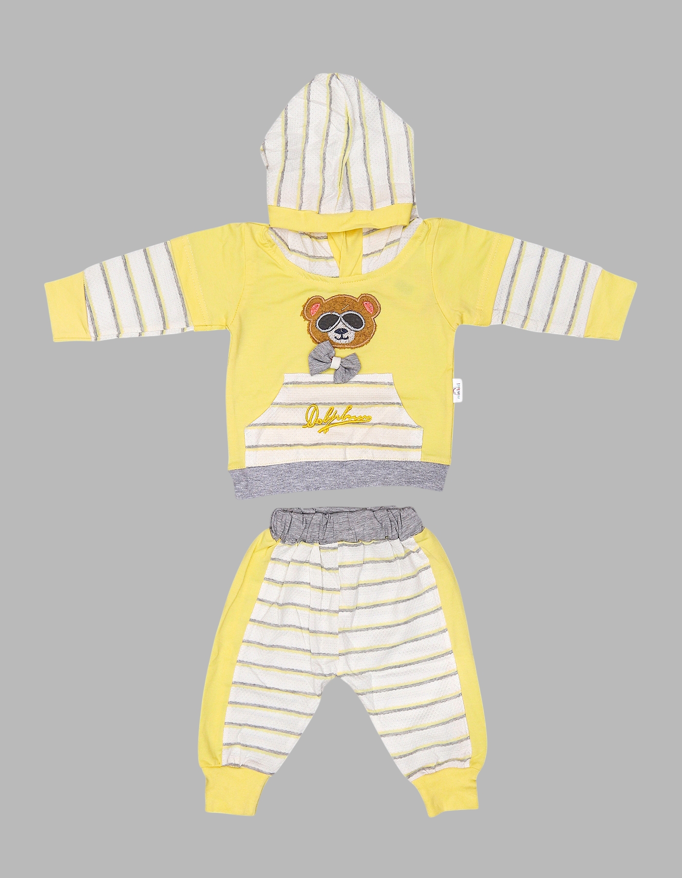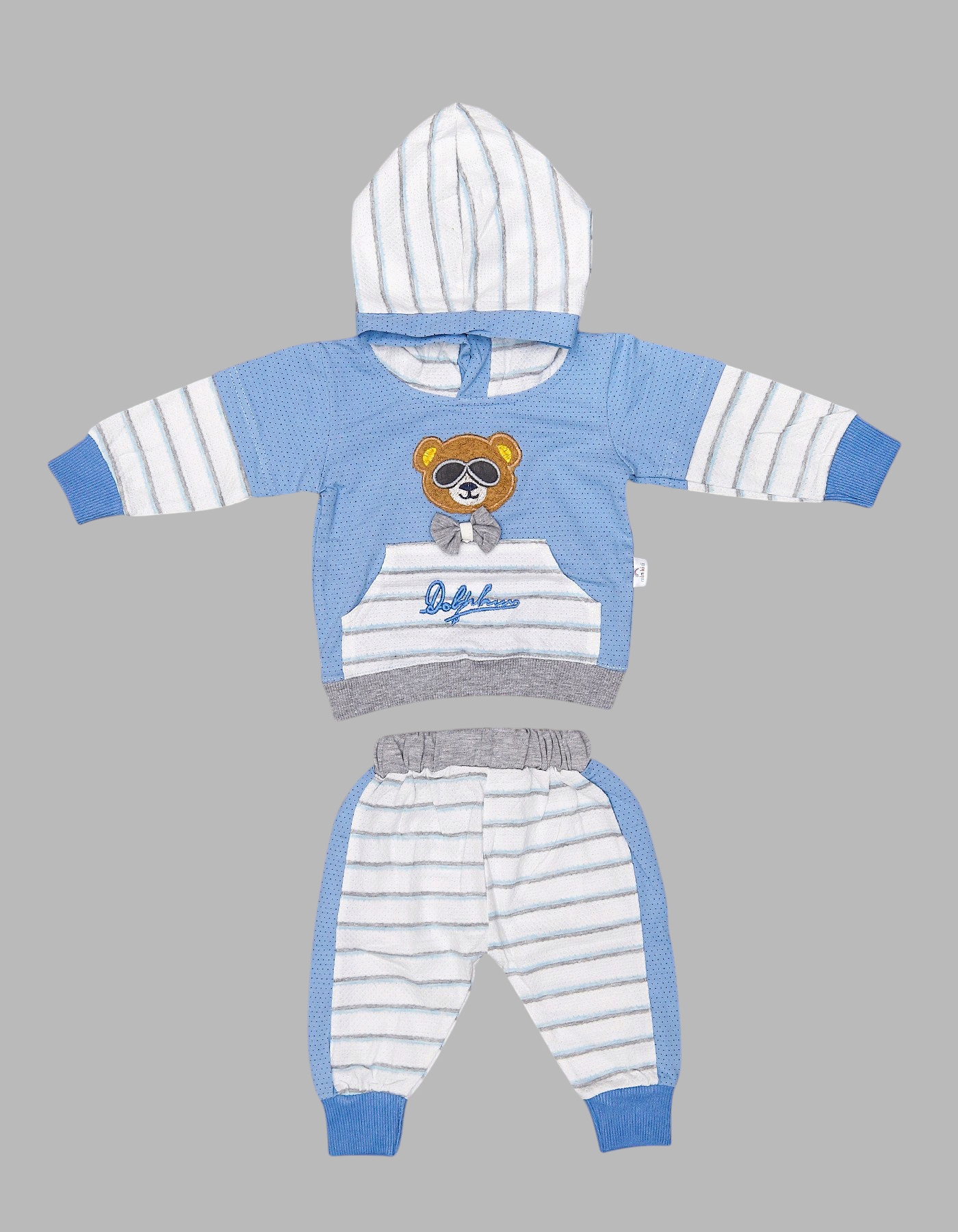 The Teddy Hoodie Baby Outfit Set is a cozy and playful choice for your little one. Featuring a striped hoodie with a 3D teddy embroidery wearing sunglasses and a matching pair of striped jogger pants, this outfit is perfect for everyday wear, playtime, or casual outings. Designed with soft, breathable fabric, it keeps your baby both stylish and comfortable. Available in Baby Pink, Sky, and Yellow.
