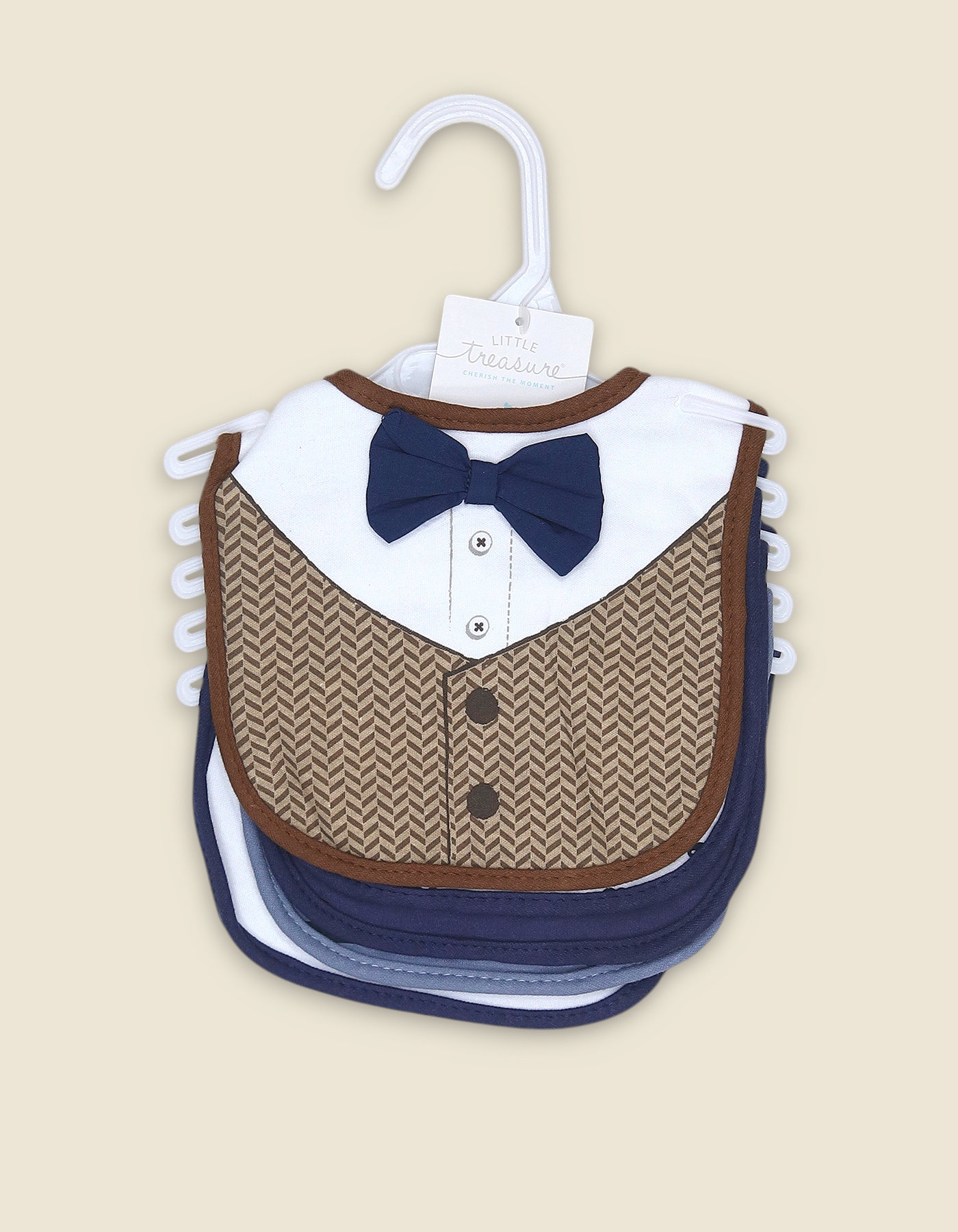Elegant baby bibs with printed vest and bow tie design. Perfect for special occasions, feeding and gifting.