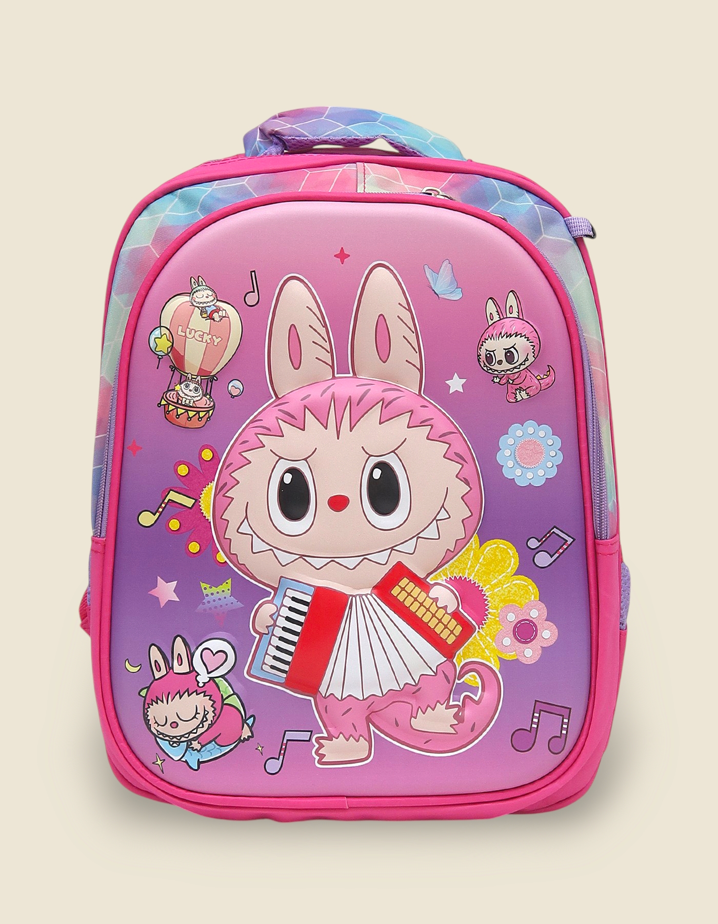 Fun Designs: Choose between the Blue bag featuring "Skater Labubu" or "Builder Labubu," and the Fuchsia bag featuring Labubu playing an accordion.